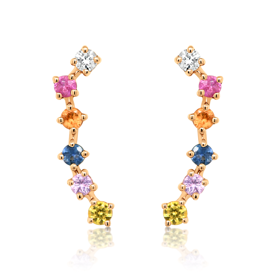 Cercei din aur roz de 18K cu două Diamante naturale Round Brilliant de 0.06ct și 10 Safire Fancy de 0.39ct.
