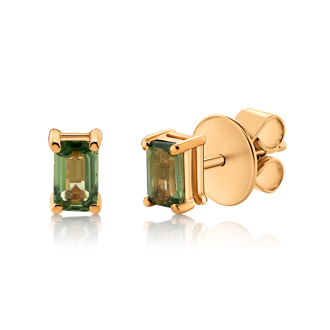 Cercei din aur roz de 18K încrustați cu două Safire verzi de 0.7ct.