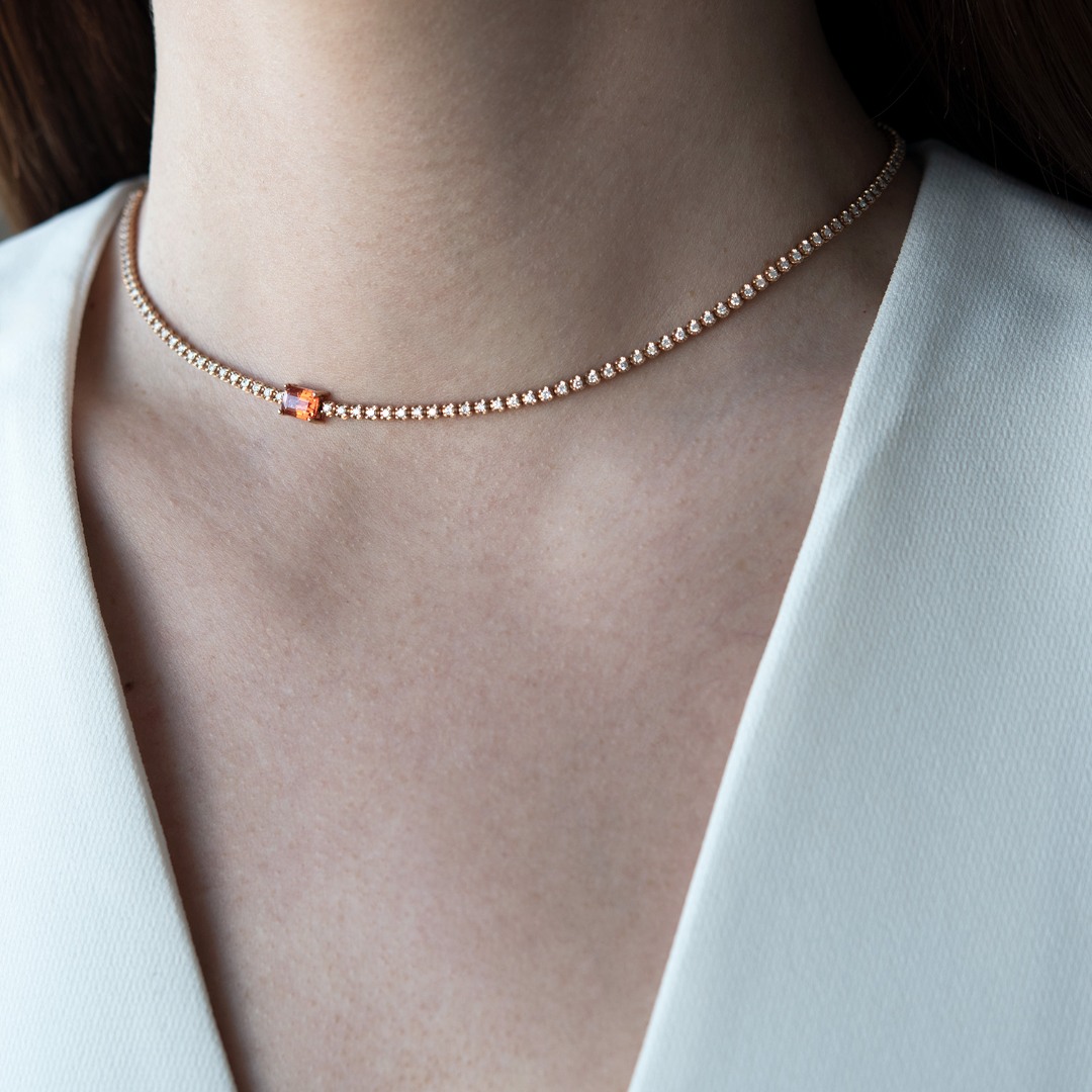 Colier Tennis din aur roz de 18K cu Safir Fancy și Diamante naturale