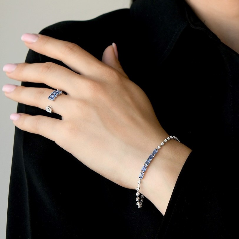 Inel din aur alb de 18K cu Safire și Diamante naturale