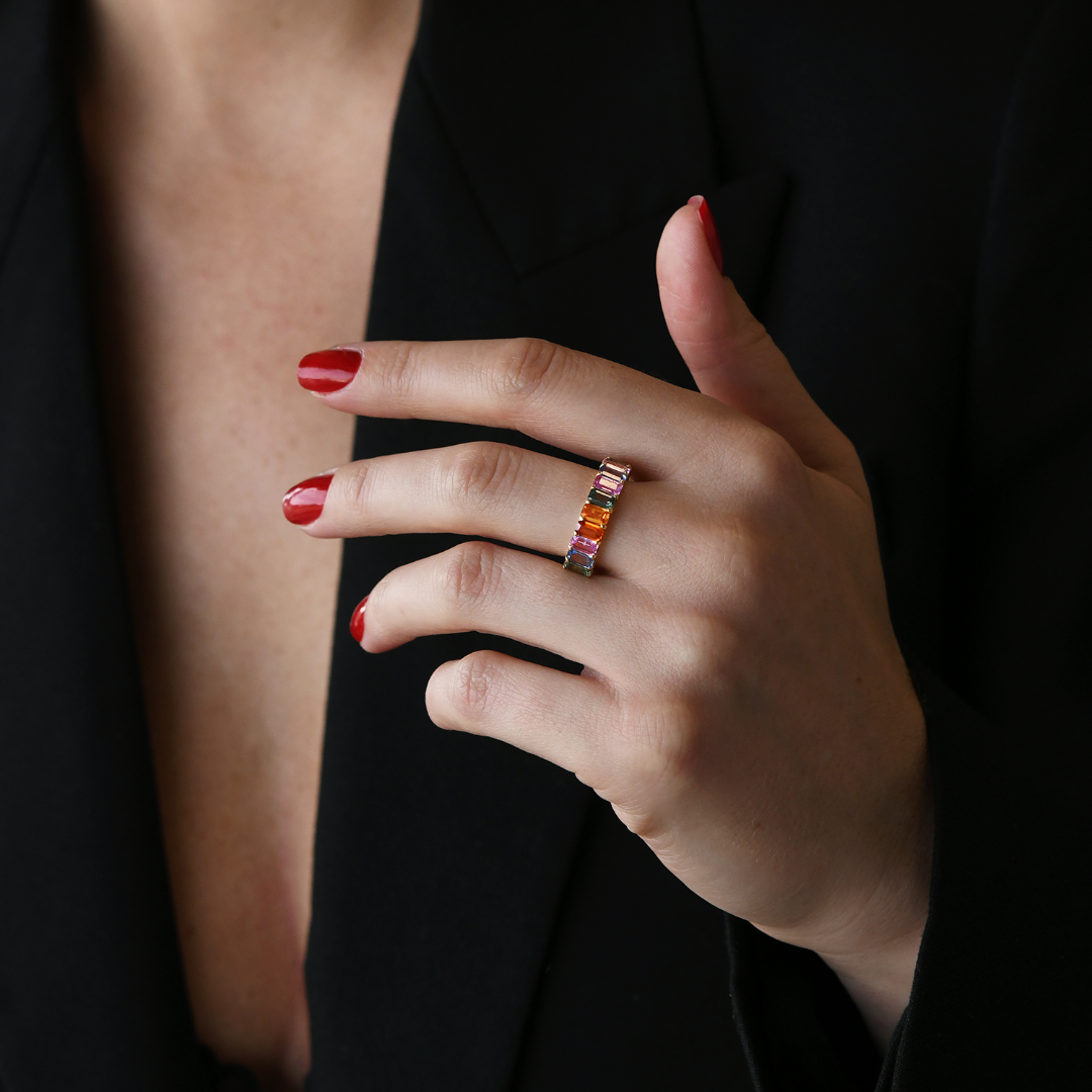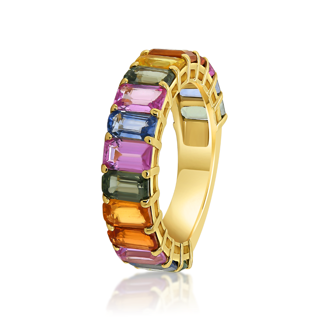Inel din aur galben de 18K cu Safire colorate