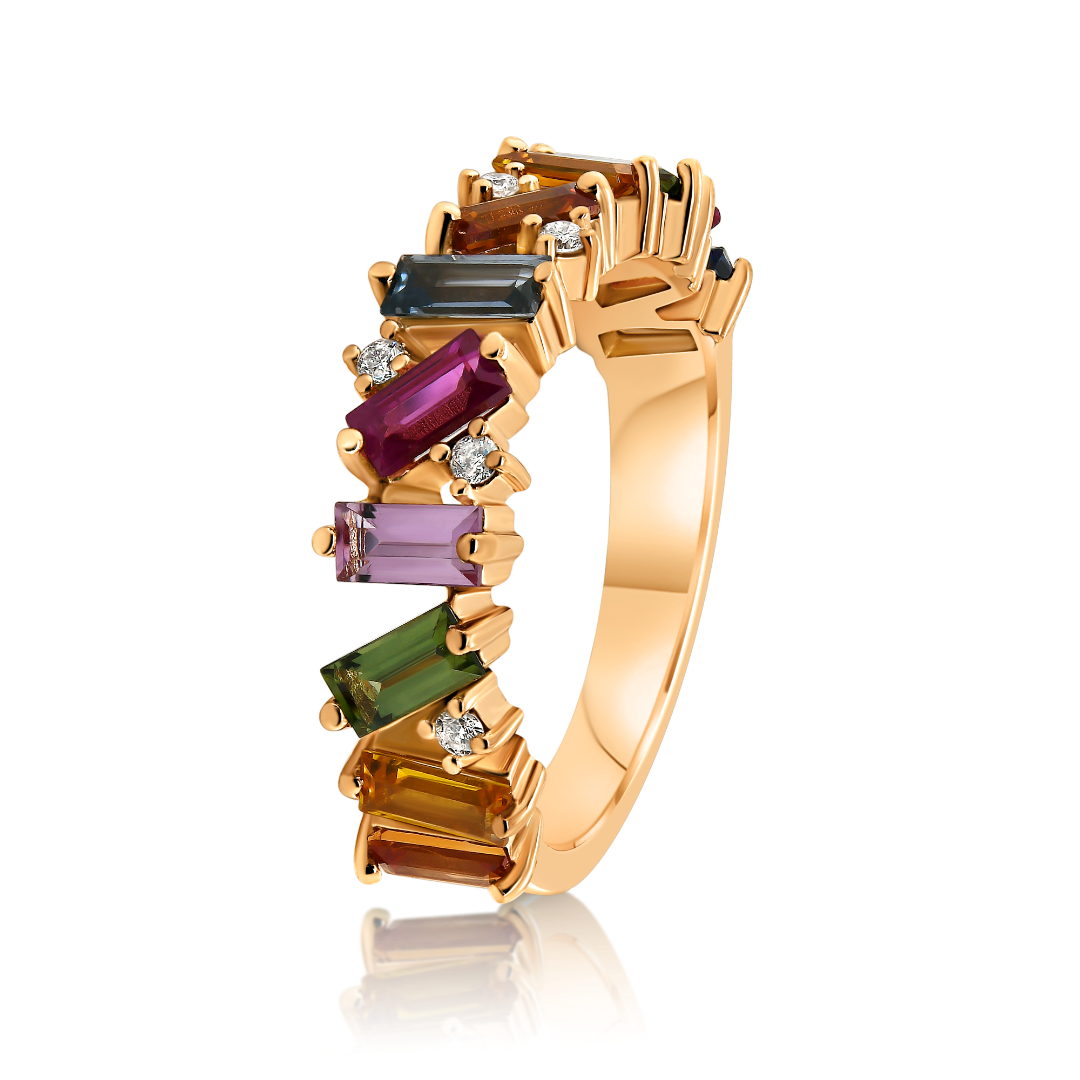 Inel din aur roz de 18K cu Diamante, Rubine și Safire colorate