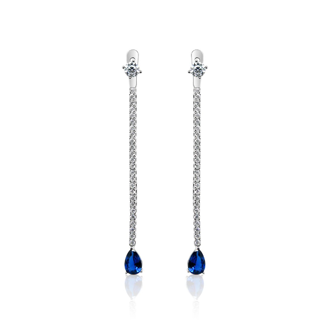 Cercei cu pietre Cubic Zirconia din aur alb de 14K, şi două opţiuni de purtare.