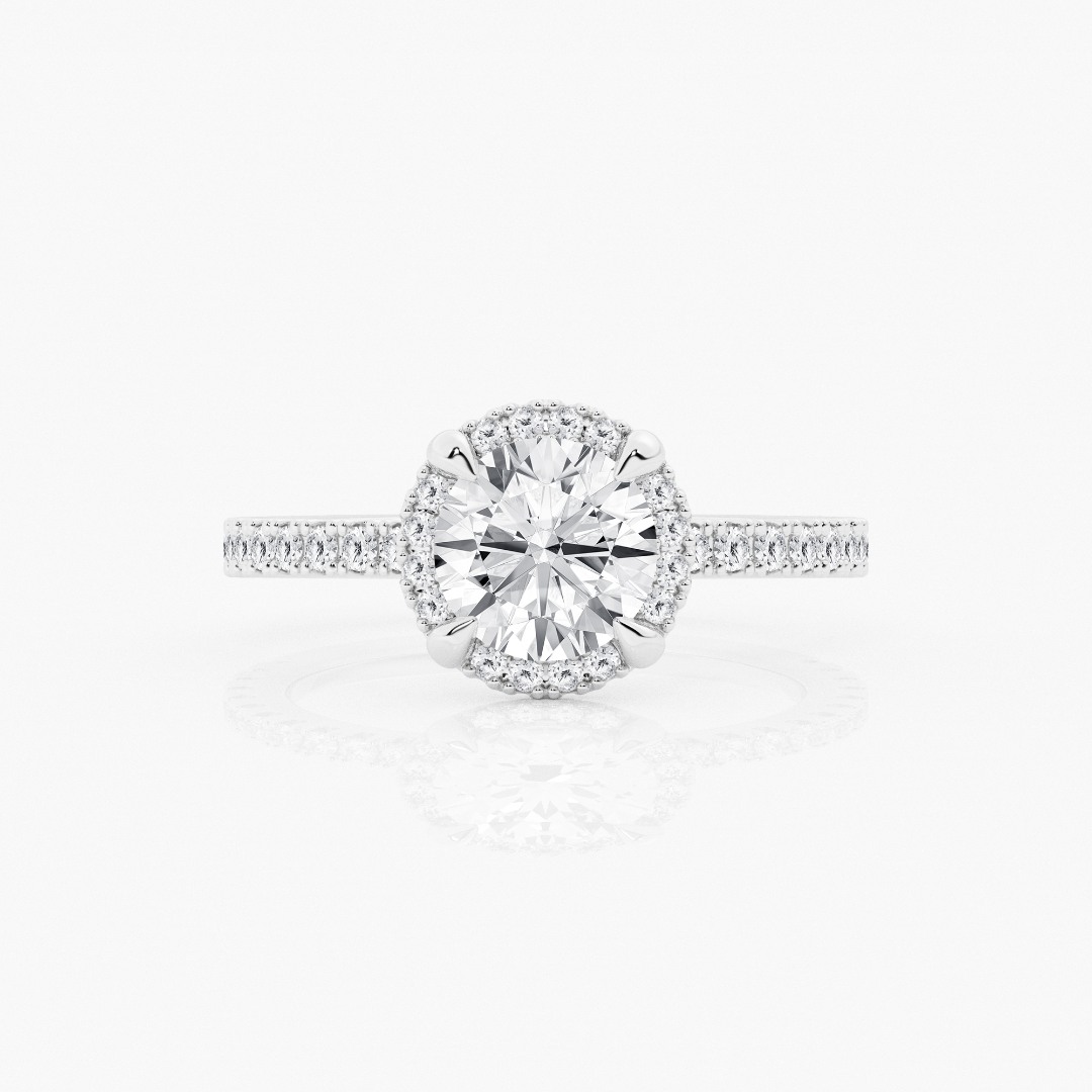 Inel de logodnă din aur alb de 14K cu 53 de Diamante Round Brilliant create în laborator.