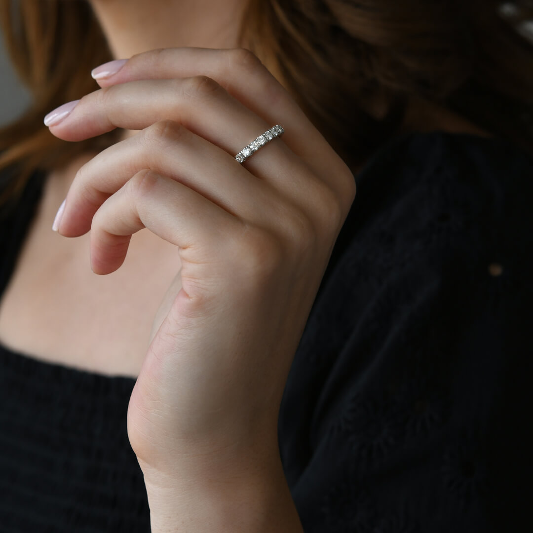 Inel din aur alb de 14K cu Diamante create în laborator
