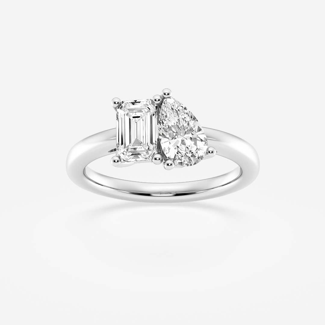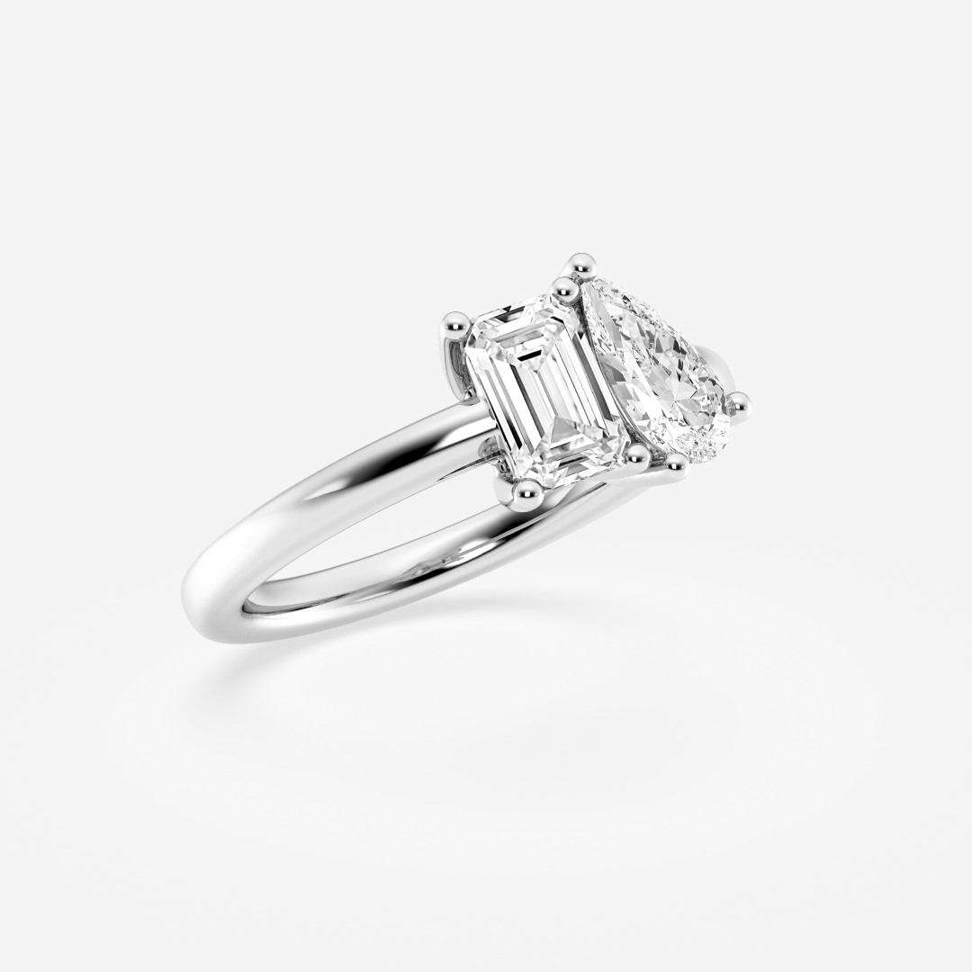 Inel din aur alb de 14K cu un Diamant emerald de 1.02ct și un Diamant pear de 1.05ct, create în laborator certificate la Institutul Gemologic IGI
