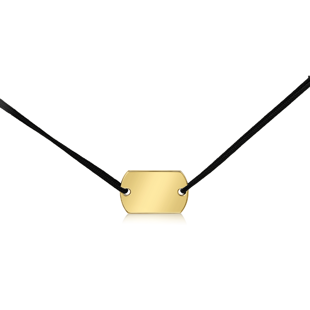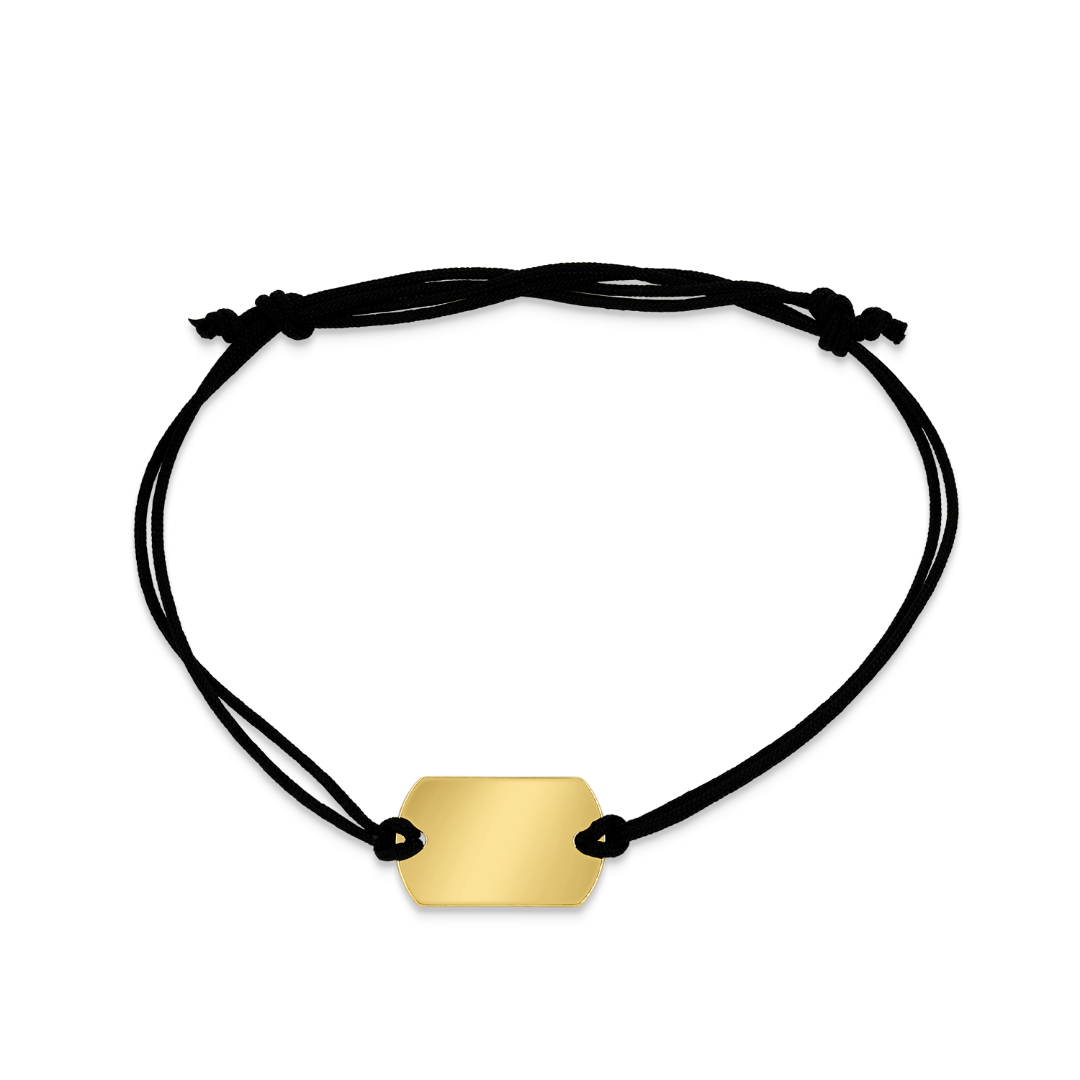 Brățară cu plăcuță din aur galben de 14K și șnur negru.