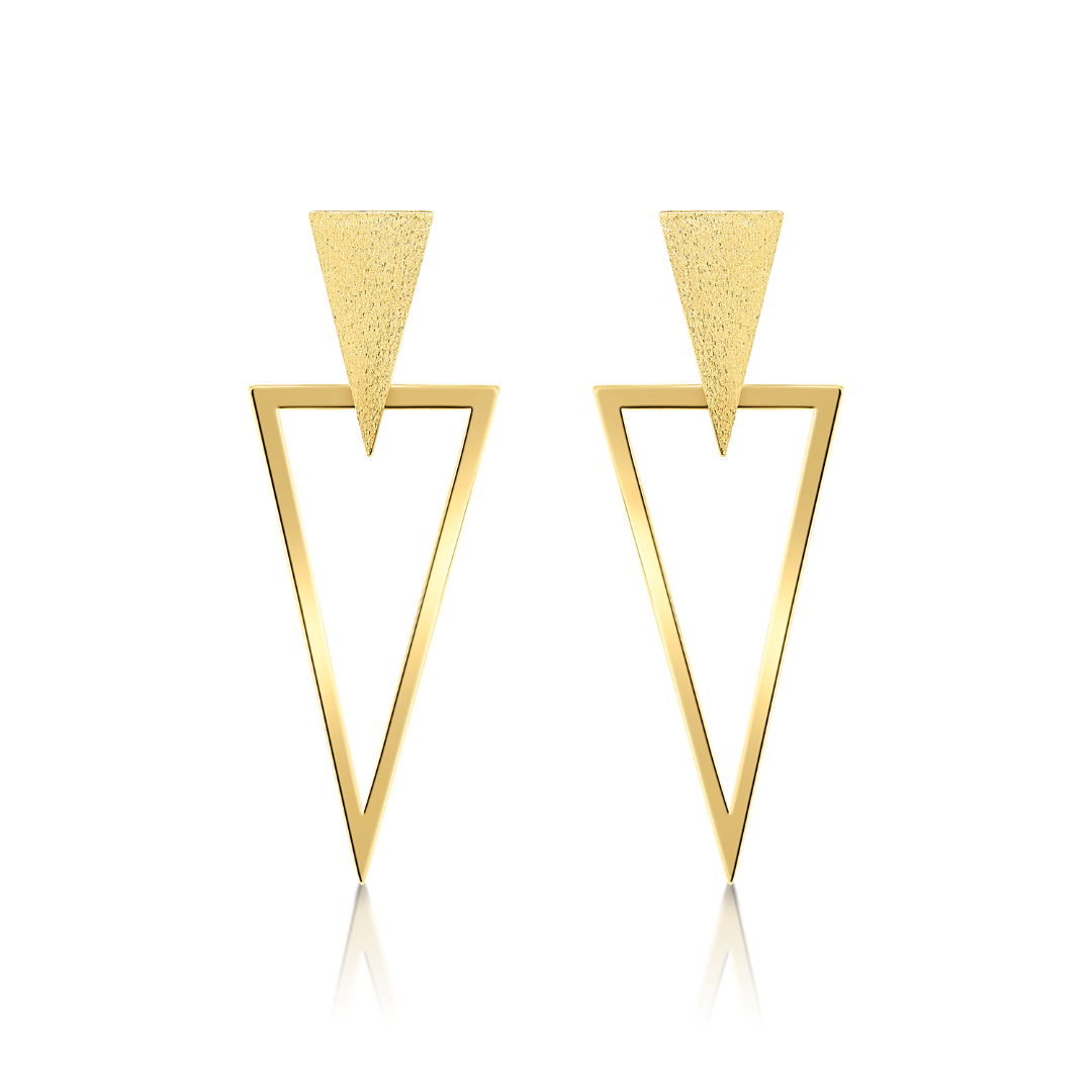 Cercei cu design geometric și efect satinat din aur galben de 14K.