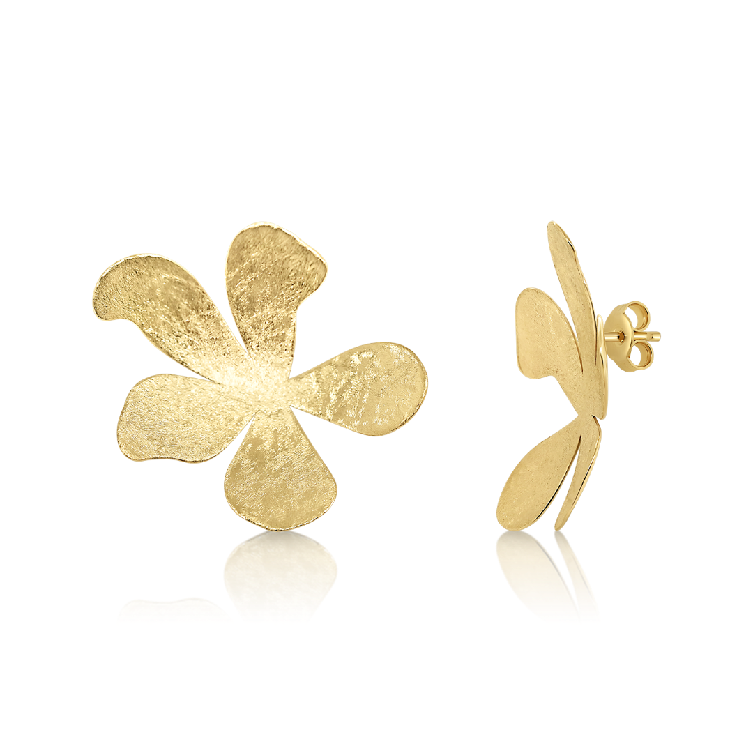 Cercei în formă de floare cu efect satinat din aur galben de 14K.