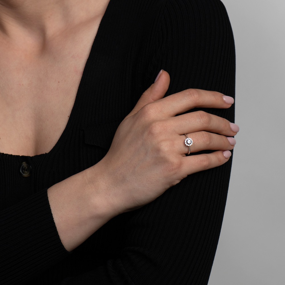 Inel din aur alb de 14K cu pietre cubic zirconia.