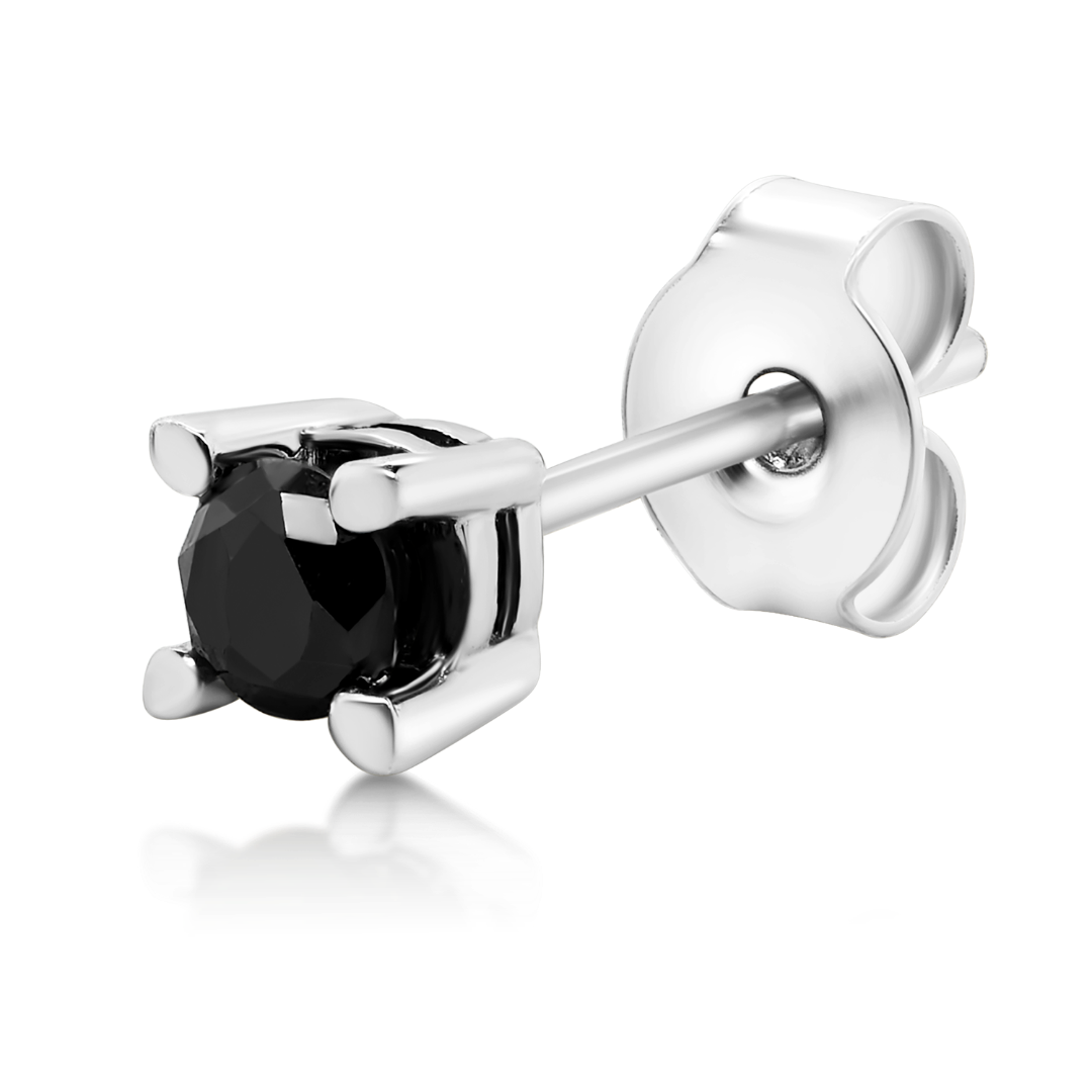 Cercel pentru bărbați din aur alb de 18K cu un Diamant negru natural de 0.10ct.
