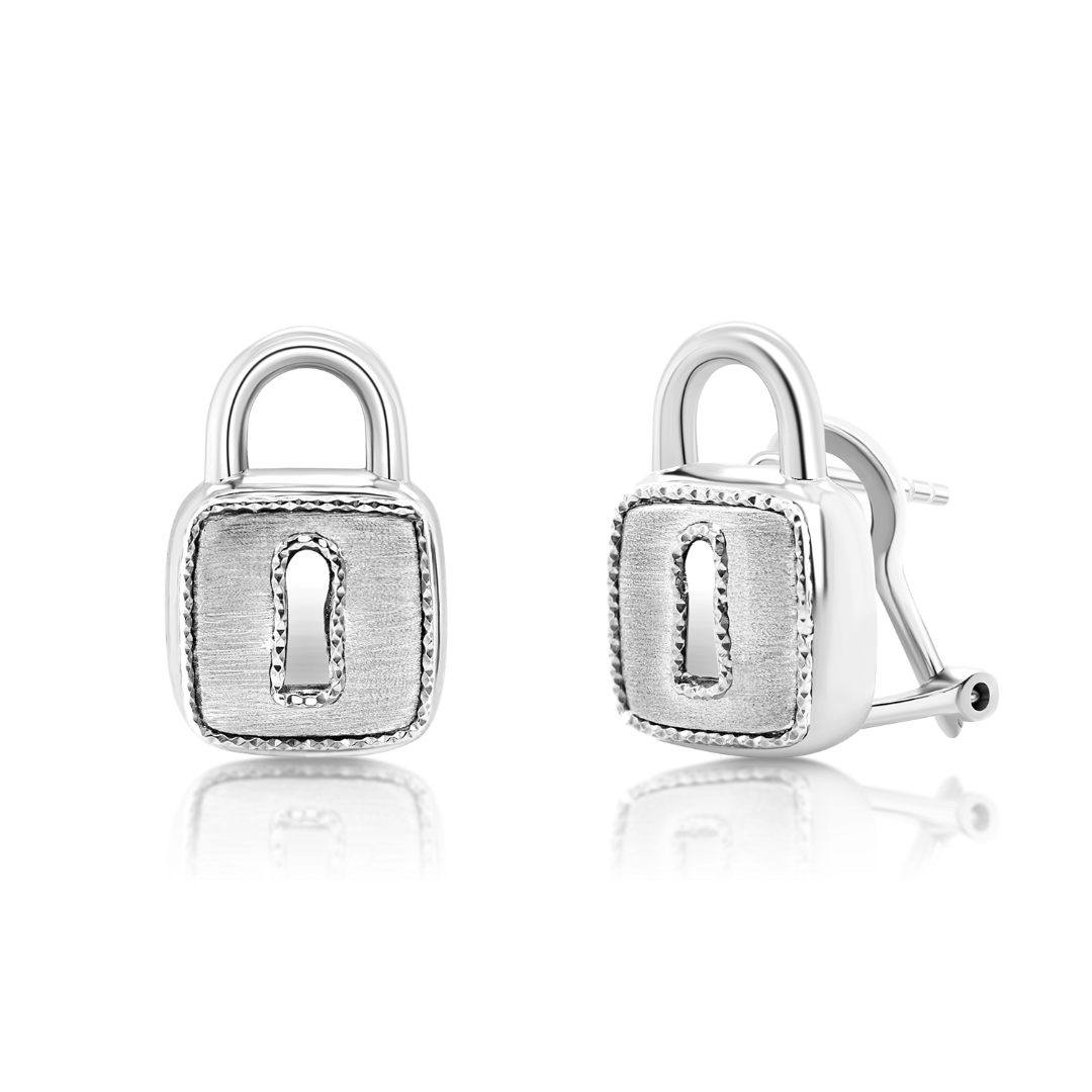 Cercei în formă de lacăt din aur alb de 14K.