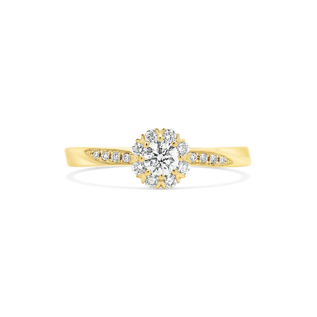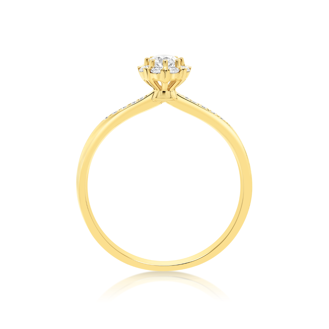Inel de logodnă din aur galben de 18K încrustat cu 19 Diamante naturale Round Brilliant.