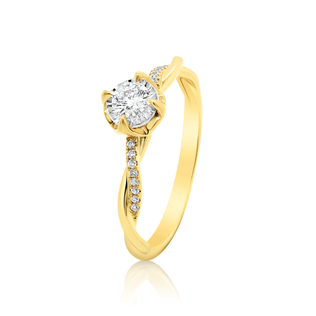 Inel de logodnă din aur galben de 18K cu Diamante naturale Round Brilliant.