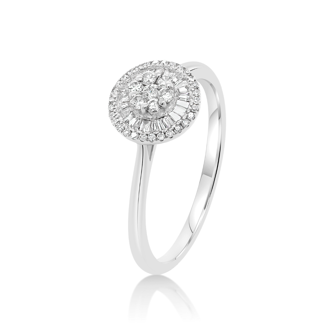 Inel din aur alb de 18K cu Diamante naturale Round Brilliant și Baguette.
