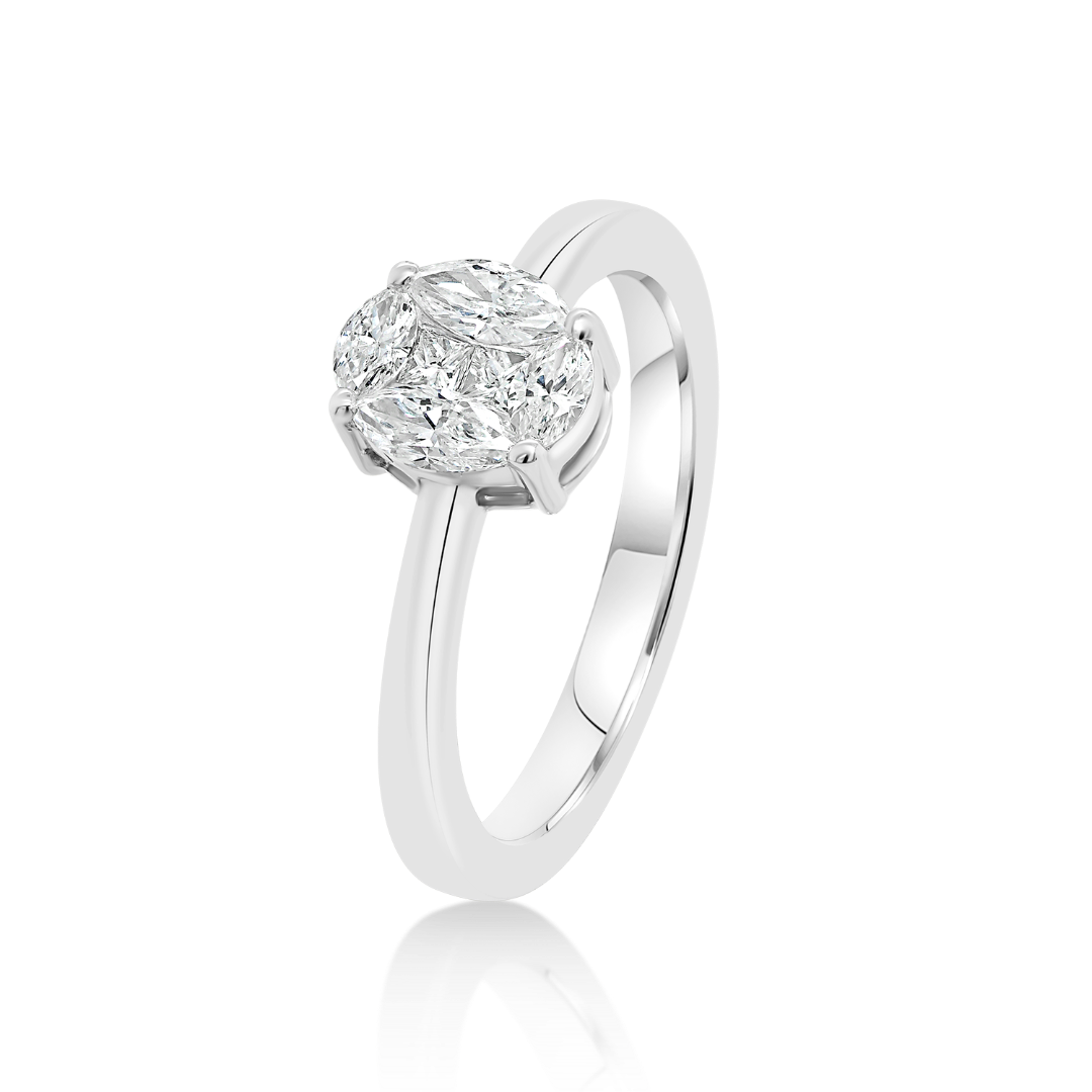 Inel de logodnă din aur alb de 18K cu Diamante Marquise și Princess cut.