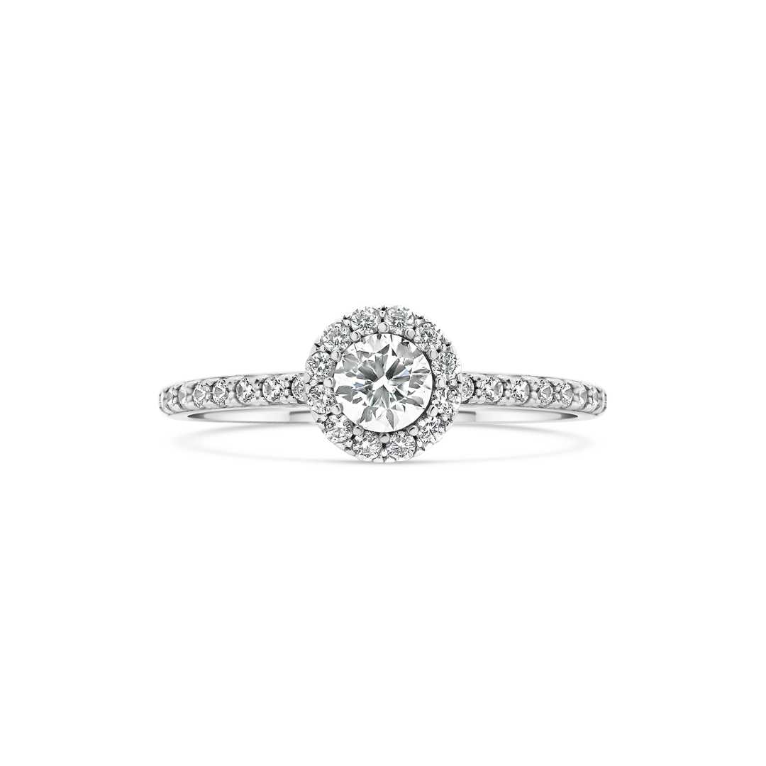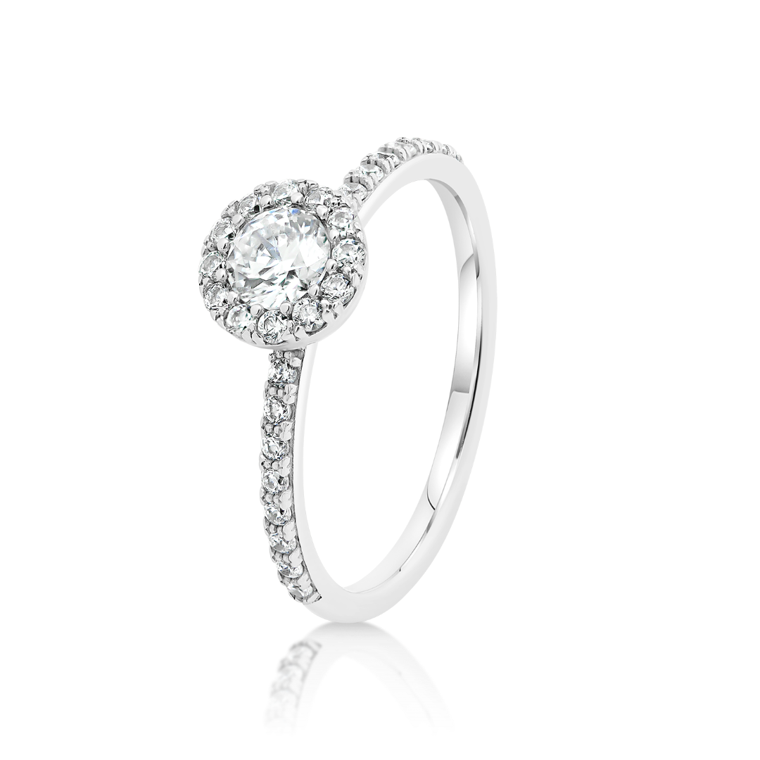 Inel de logodnă din aur alb de 14K cu pietre cubic zirconia incolore.