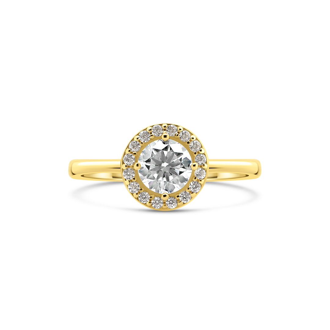 Inel de logodnă din aur galben de 14K cu pietre cubic zirconia.