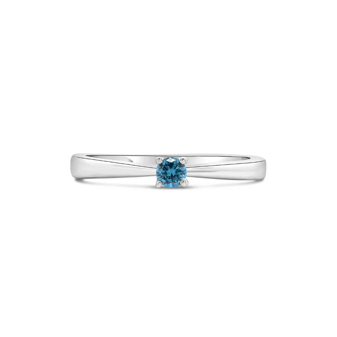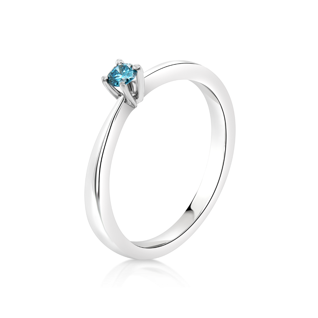 Inel de logodnă din aur alb de 18K încrustat cu un Diamant Ice Blue natural.