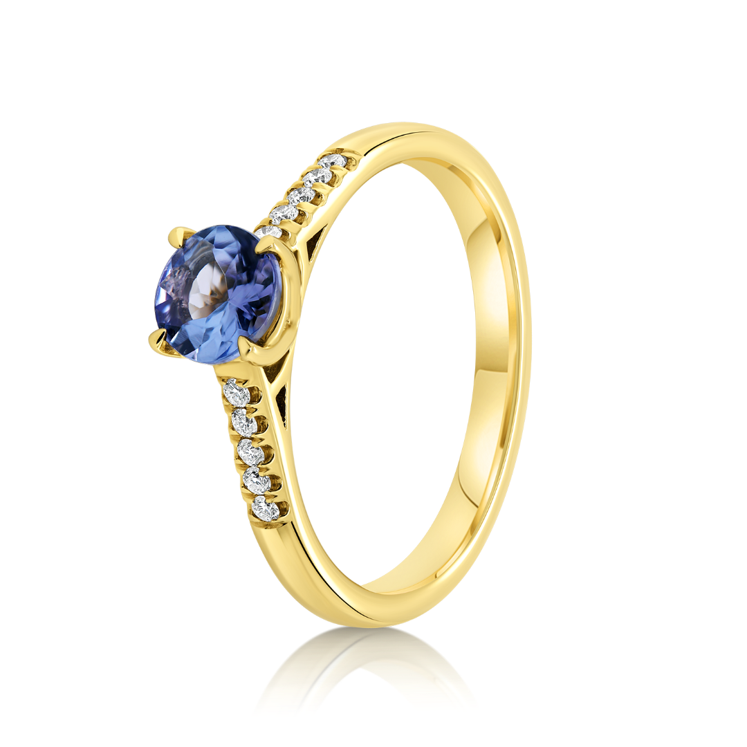 Inel din aur galben de 18K, încrustat cu Diamante albe 0.06ct. si Tanzanit de 0.41ct.