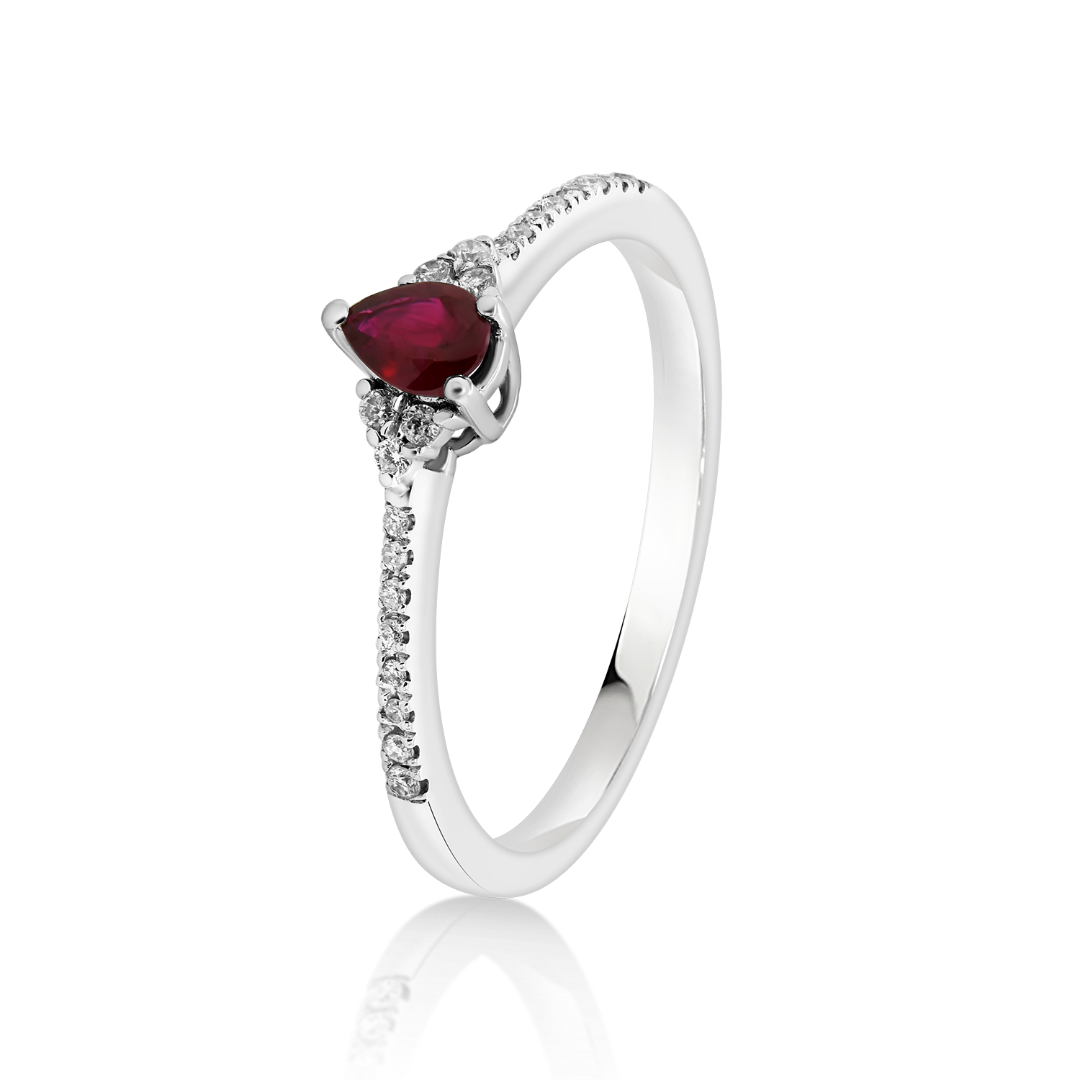 Inel din aur alb de 18K, cu Diamante și Rubin