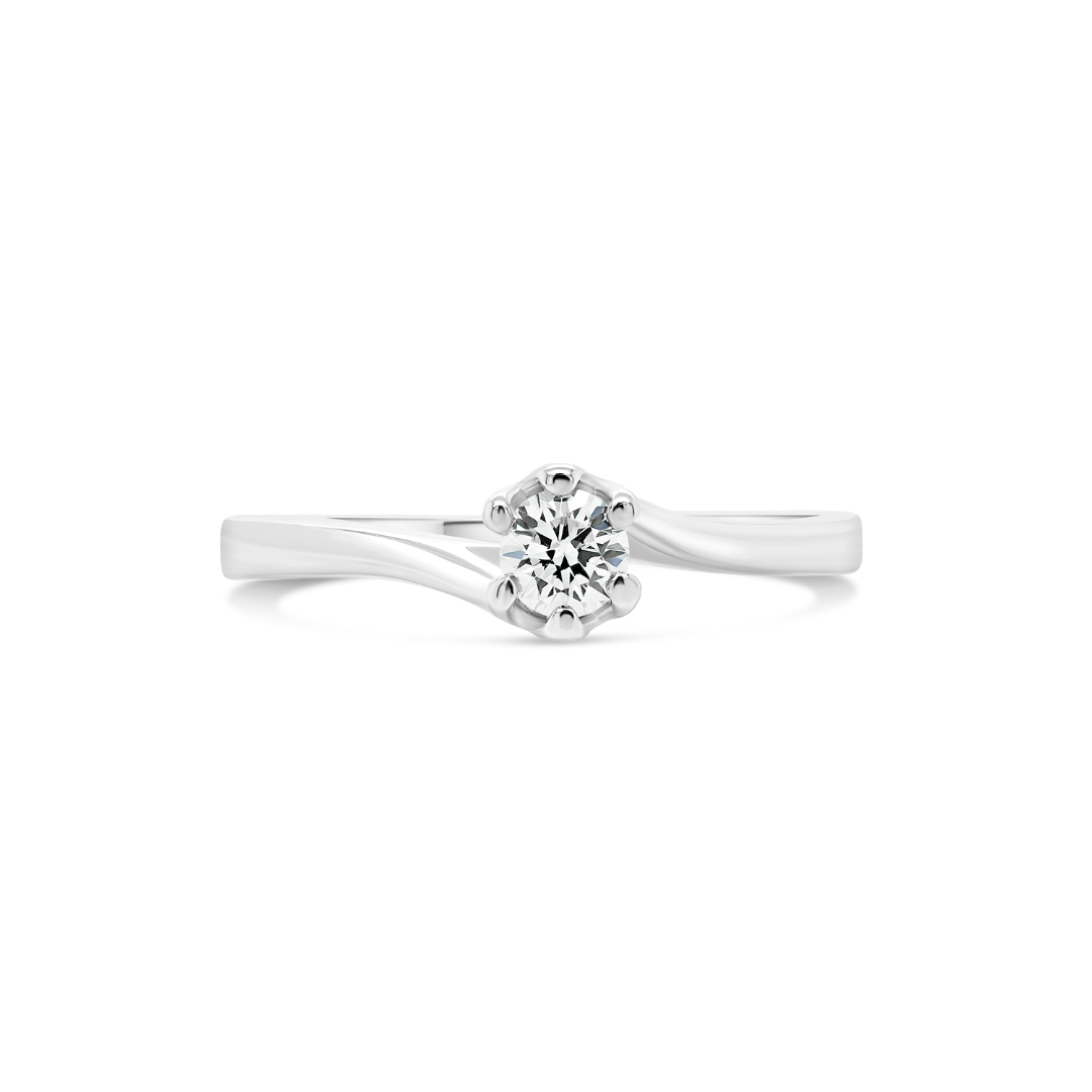 Inel de logodnă din aur alb de 18K încrustat cu un Diamant natural Round Brilliant.