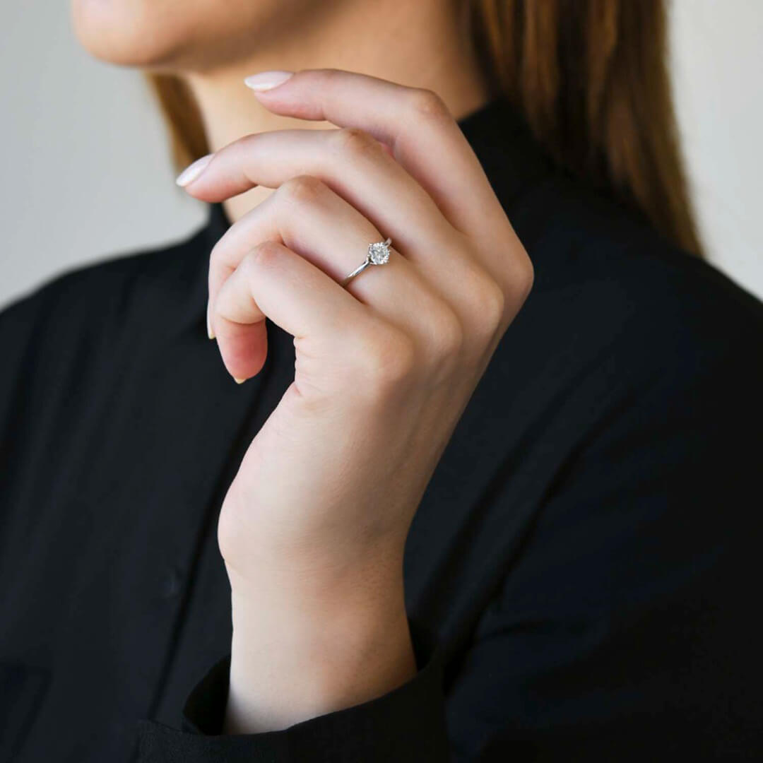 Inel de logodnă din aur alb de 14K cu un Diamant natural