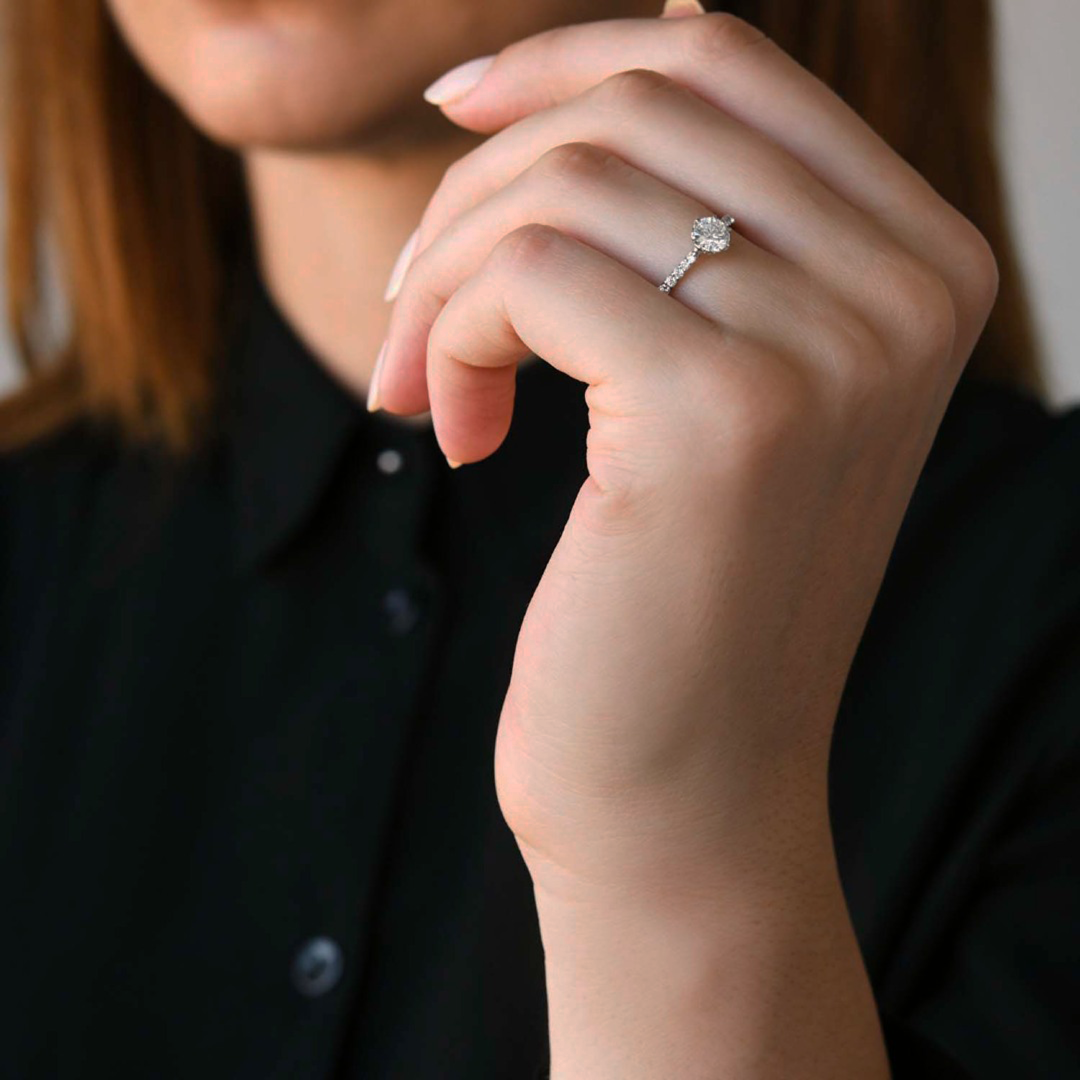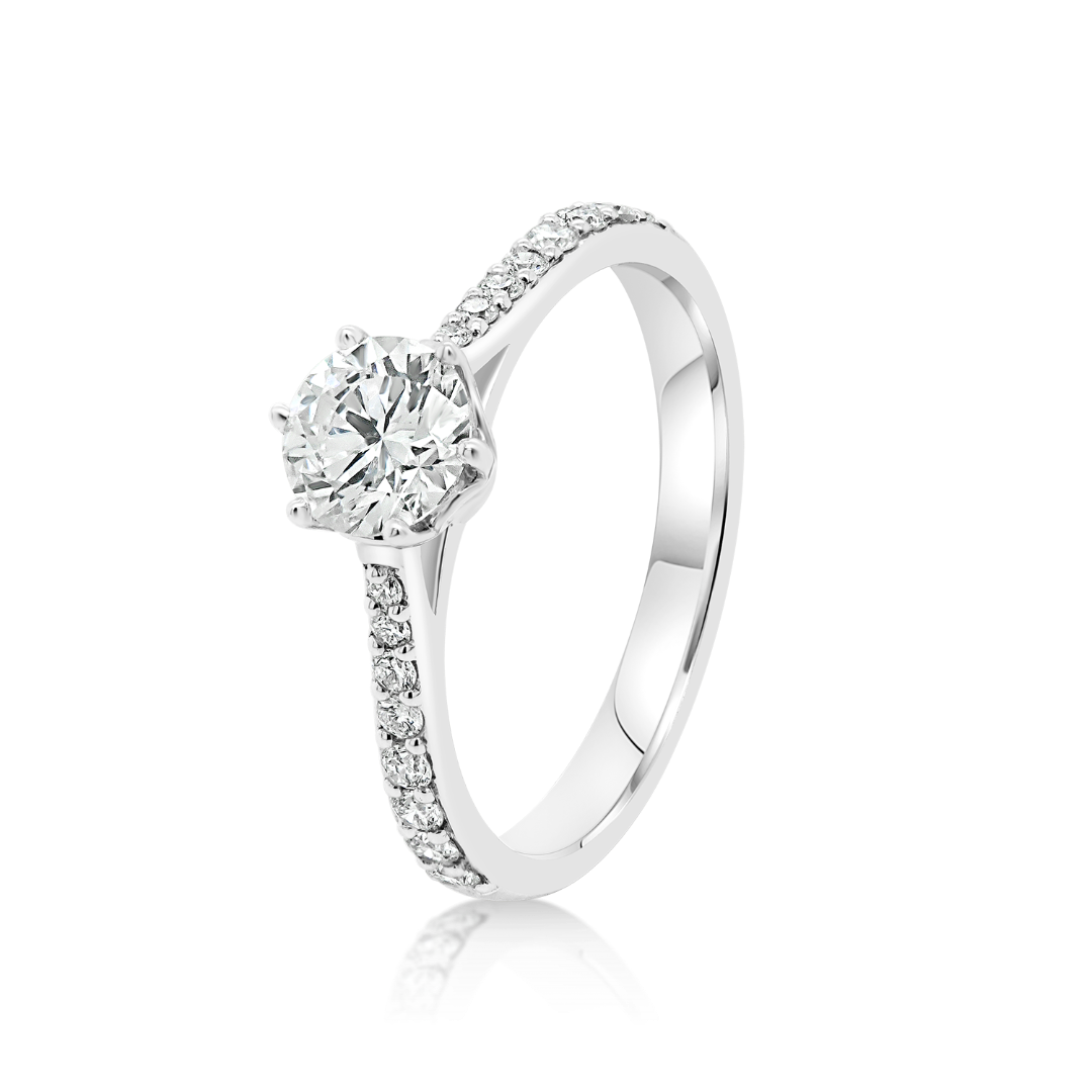 Inel de logodnă din aur alb de 18K cu Diamant natural certificat GIA