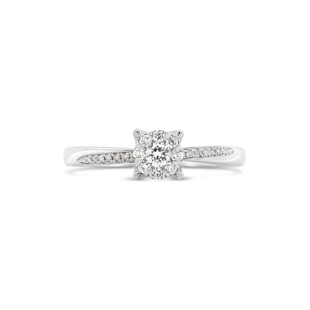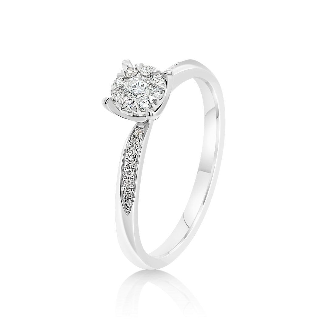 Inel de logodnă din aur alb de 18K cu 23 de Diamante naturale Round Brilliant.
