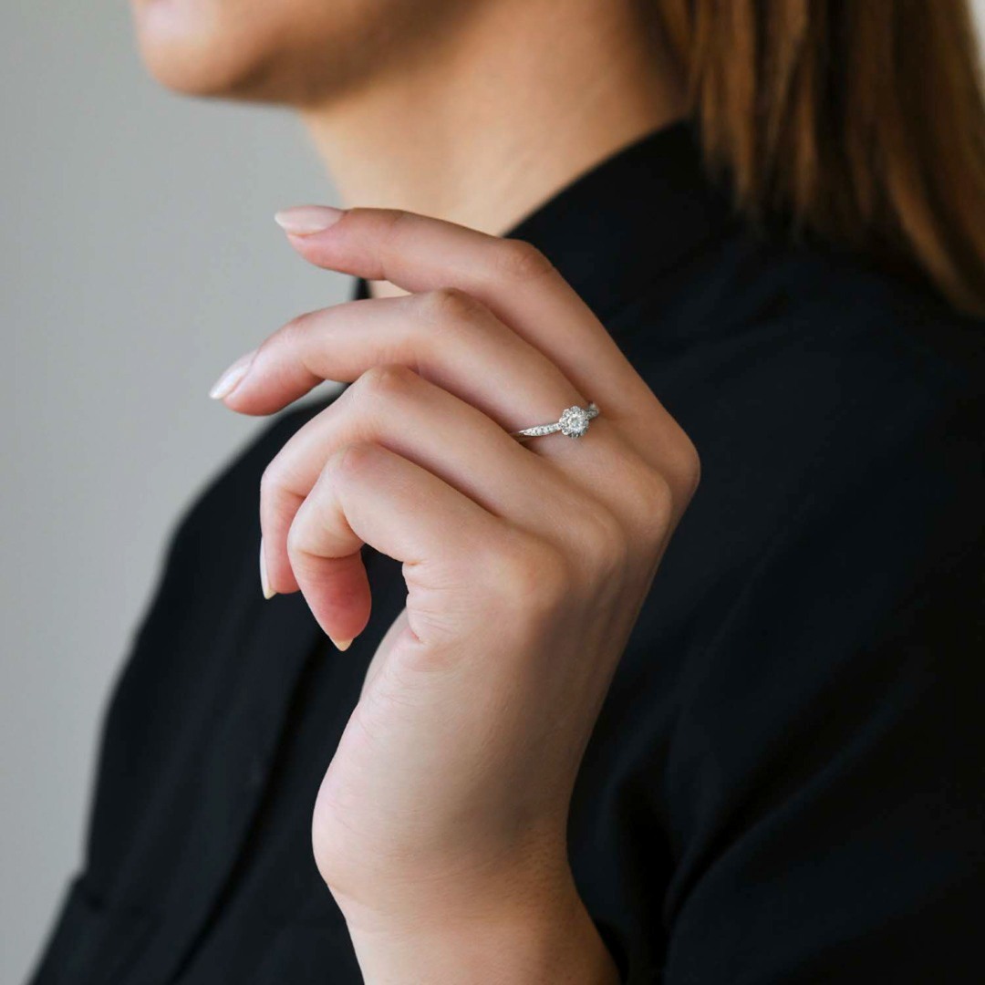 Inel de logodnă din aur alb de 18K cu Diamante naturale