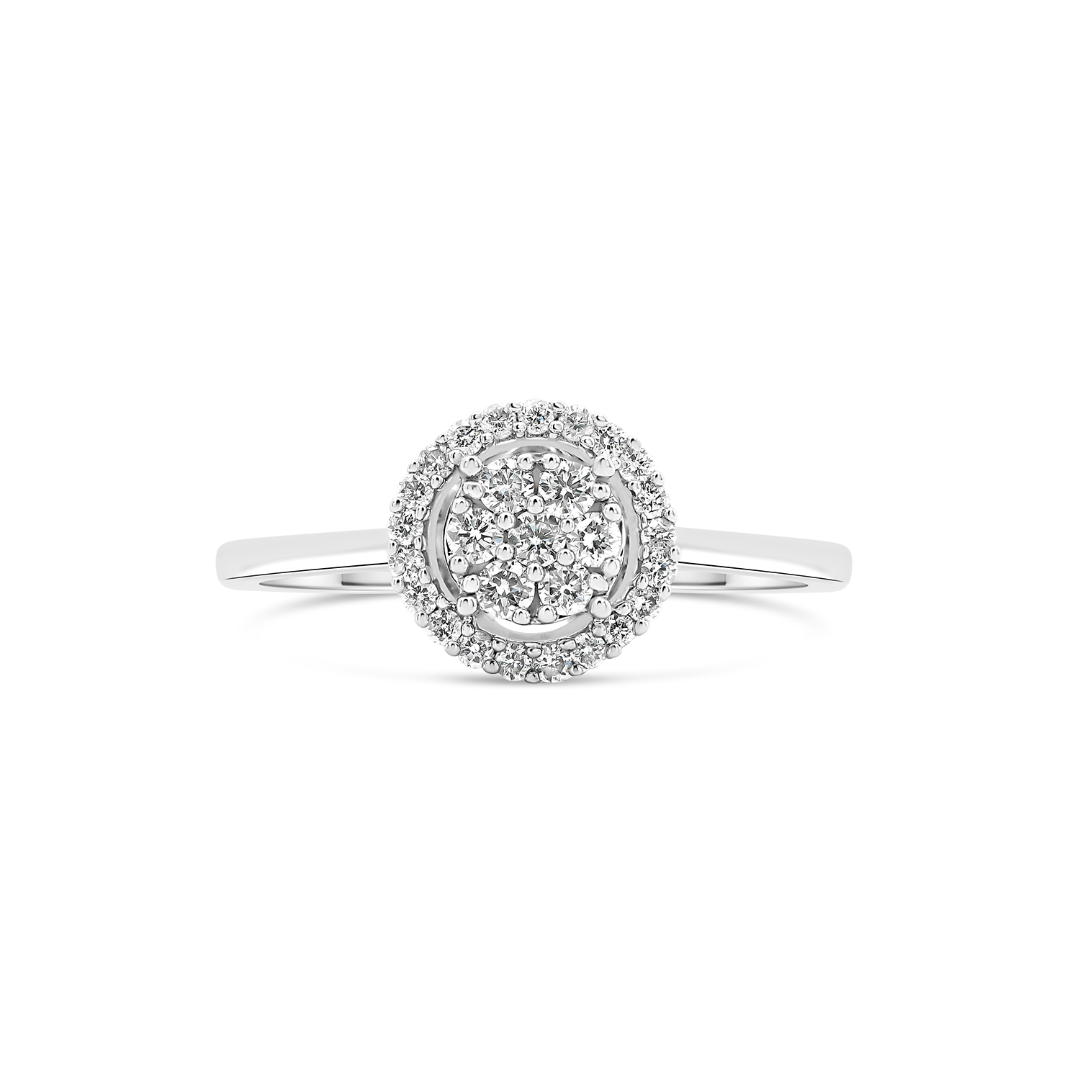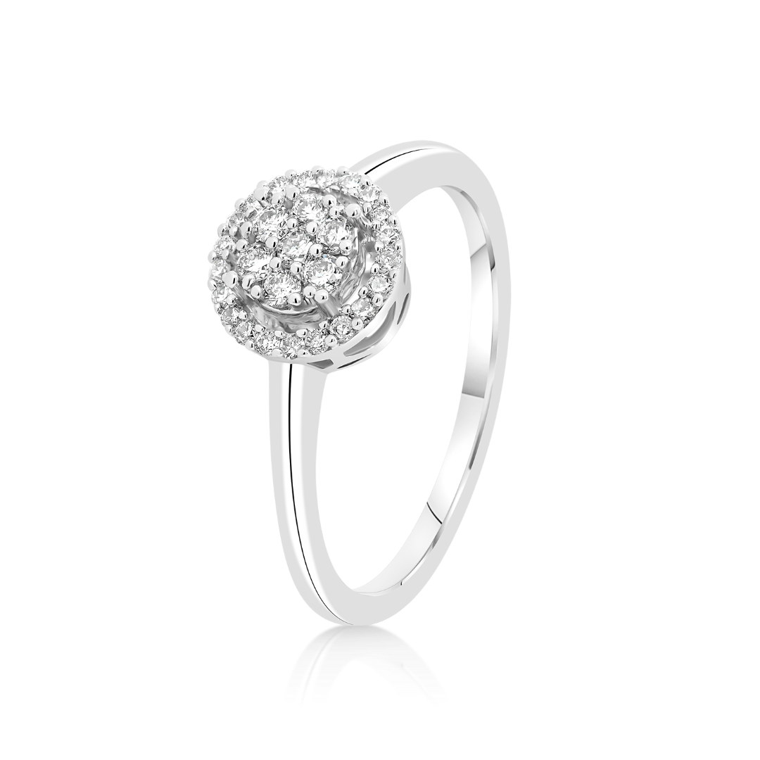 Inel de logodnă din aur alb de 18K încrustat cu 23 de Diamante naturale Round Brilliant de 0.20ct.
