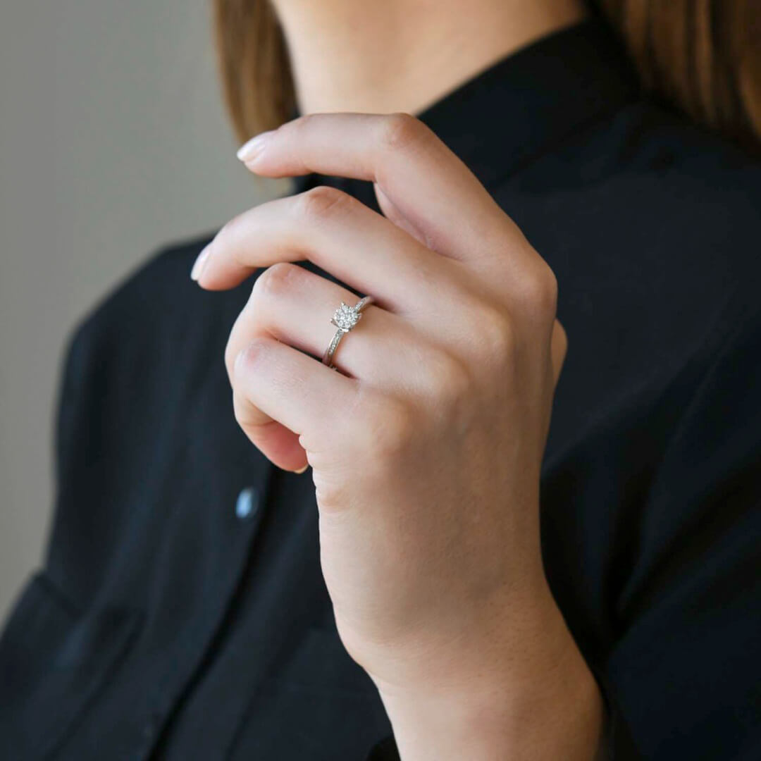 Inel de logodnă din aur alb de 18K cu Diamante naturale