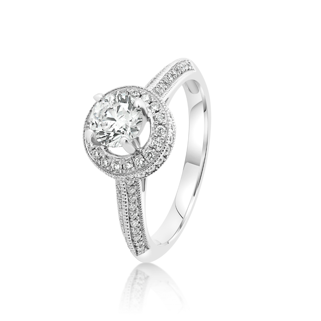 Inel de logodnă din aur alb de 18K cu Diamante naturale și certificat GIA