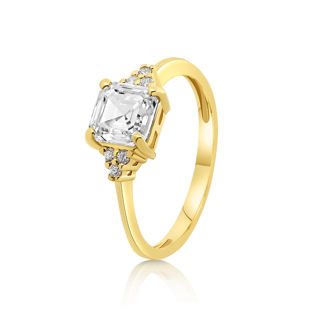 Inel de logodnă din aur galben de 14K cu Diamante de laborator.