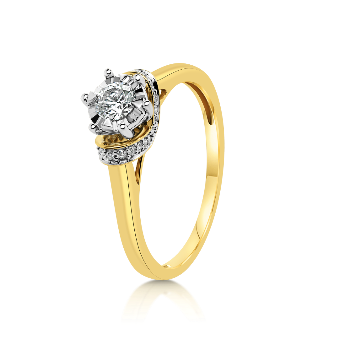 Inel de logodnă din aur galben de 18K cu Diamante naturale