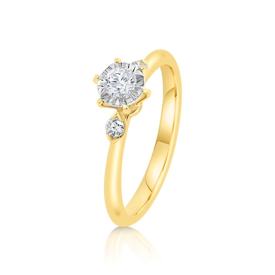 Inel de logodnă din aur galben de 18K cu Diamante naturale