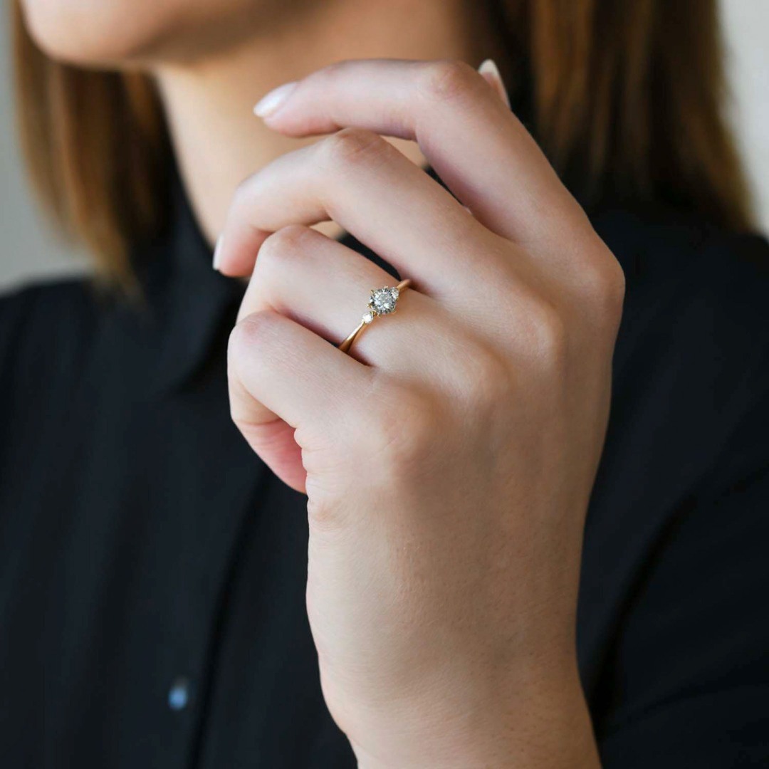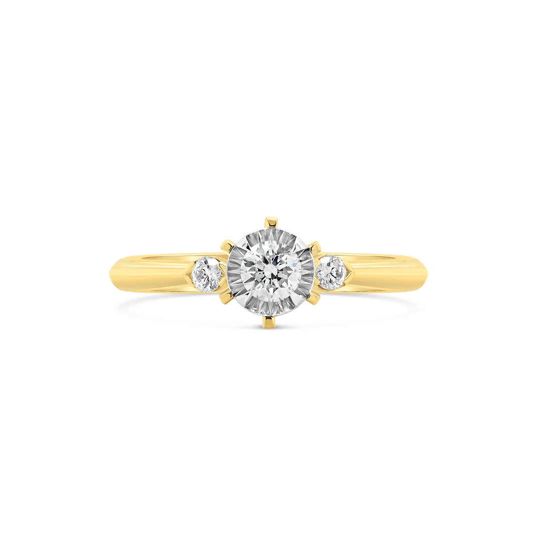 Inel de logodnă din aur galben de 18K cu Diamante naturale Round Brilliant.