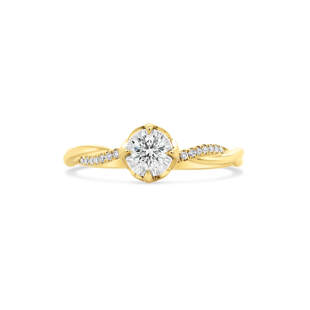 Inel de logodnă din aur galben de 18K cu Diamante naturale Round Brilliant.