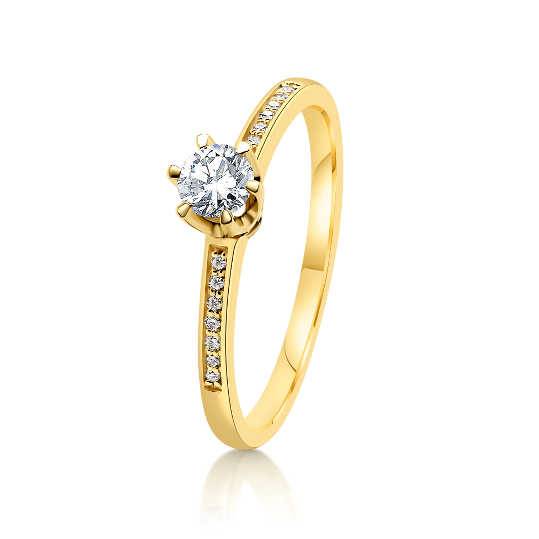 Inel de logodnă din aur galben de 14K cu un Diamant central Round Brilliant de 0.24ct. și 14 Diamante de 0.06ct.
