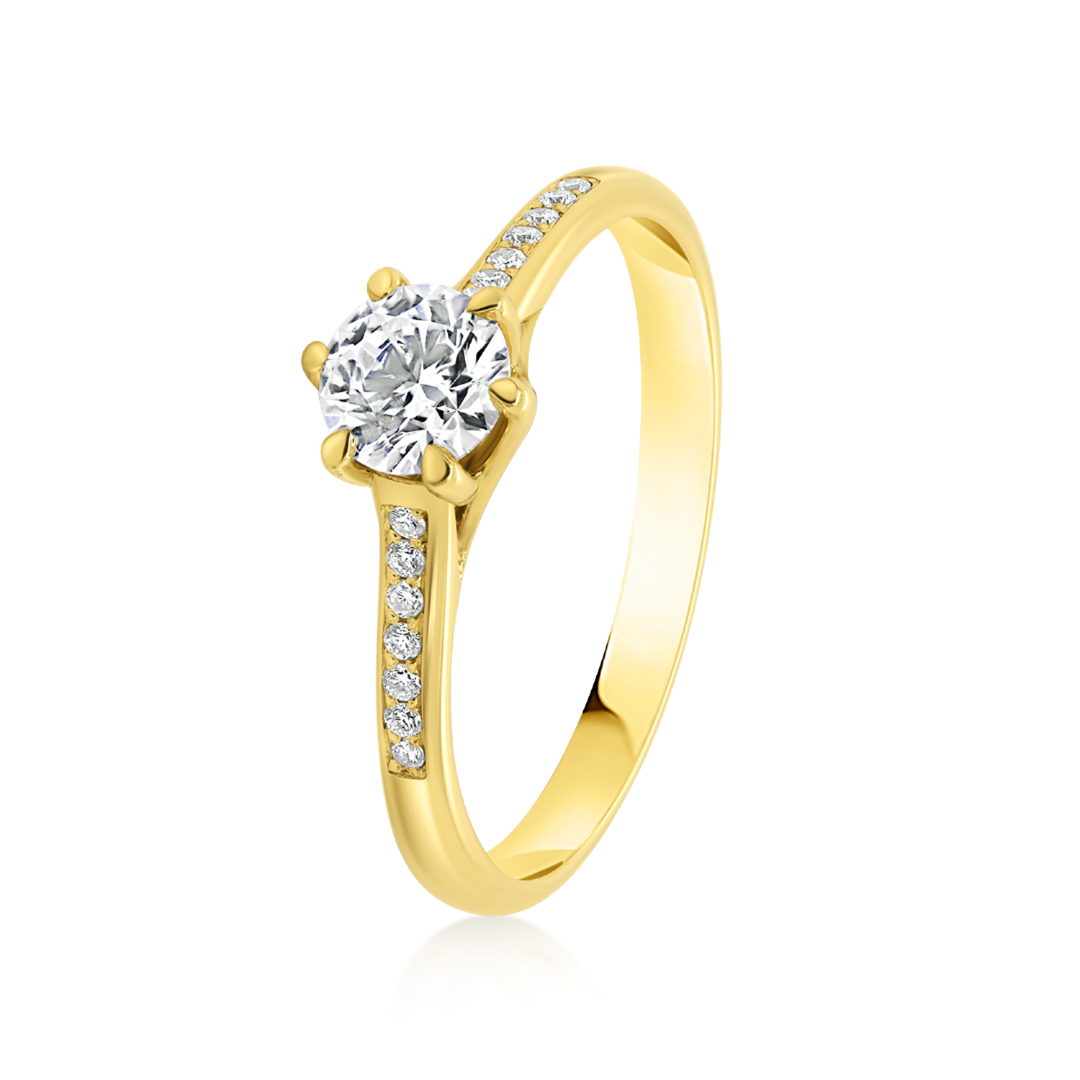 Inel din aur galben de 18K, încrustat cu un Diamant central certificat GIA de 0.37ct. si 16 Round Brilliant de 0.07ct.