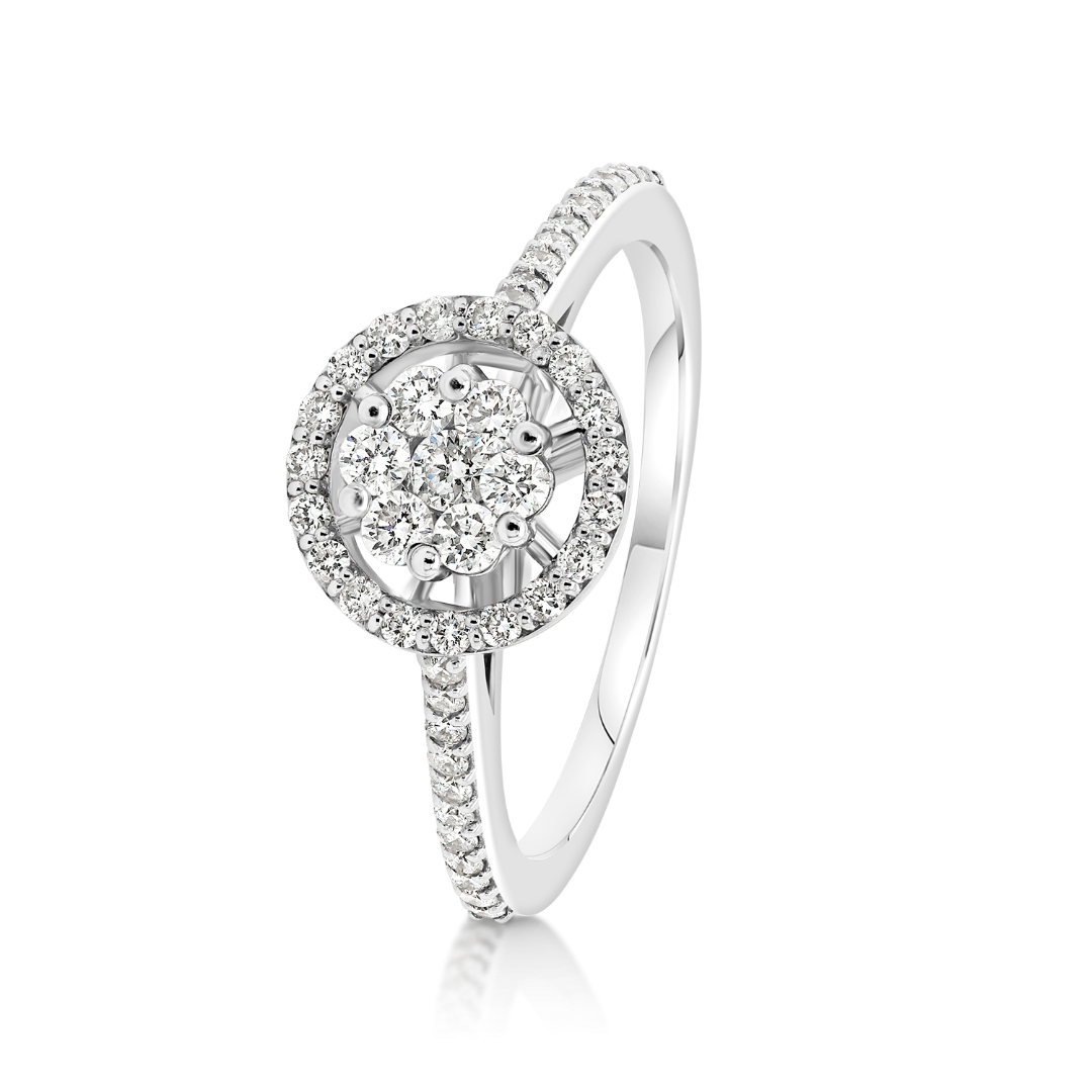 Inel din aur alb de 14K încrustat cu Diamante naturale.