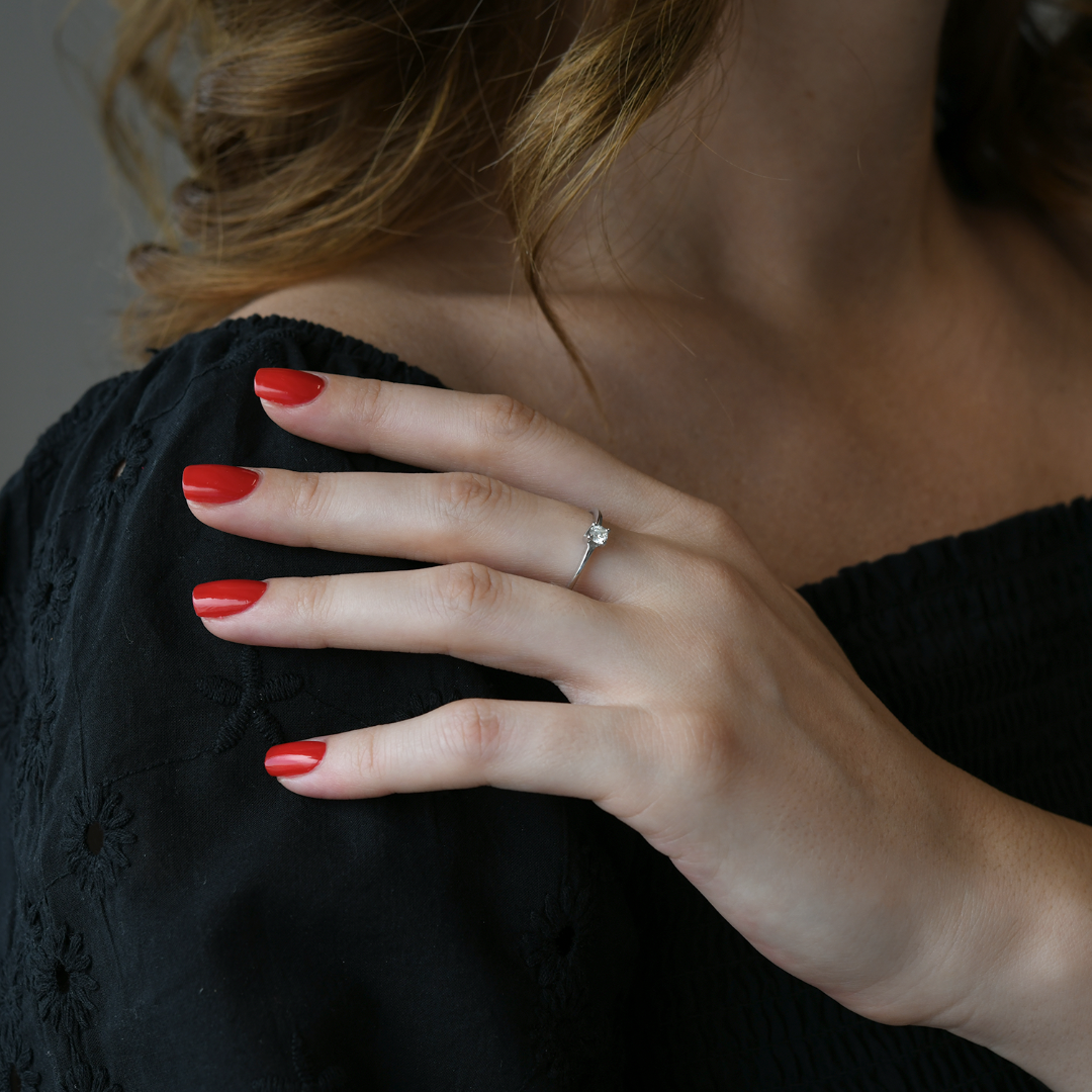 Inel de logodnă din aur alb de 18K cu un Diamant natural Round Brilliant.