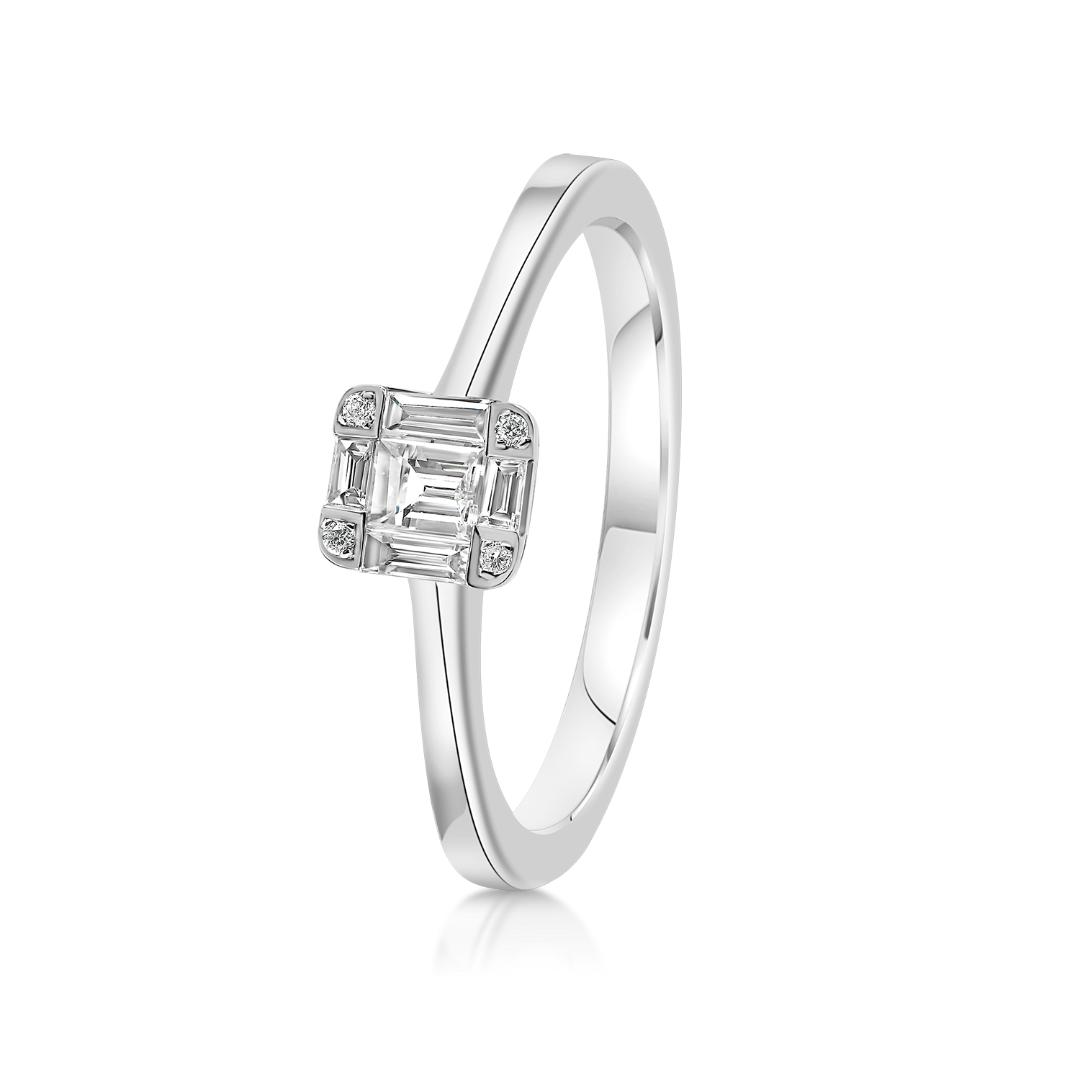 Inel de logodnă din aur alb de 14K cu Diamante naturale