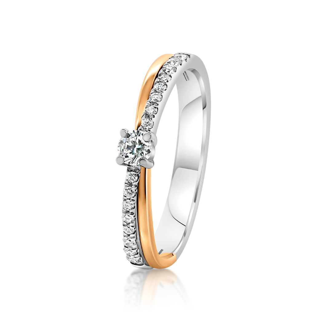 Inel din aur alb de 18K cu Diamante naturale și element din aur roz.