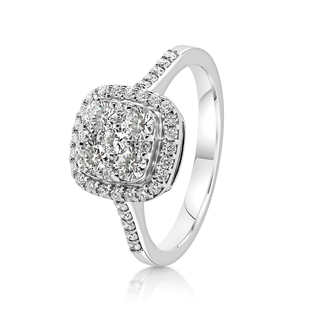 Inel din aur alb de 14K, încrustat cu 43 de Diamante naturale Round Brilliant de 0.554ct.