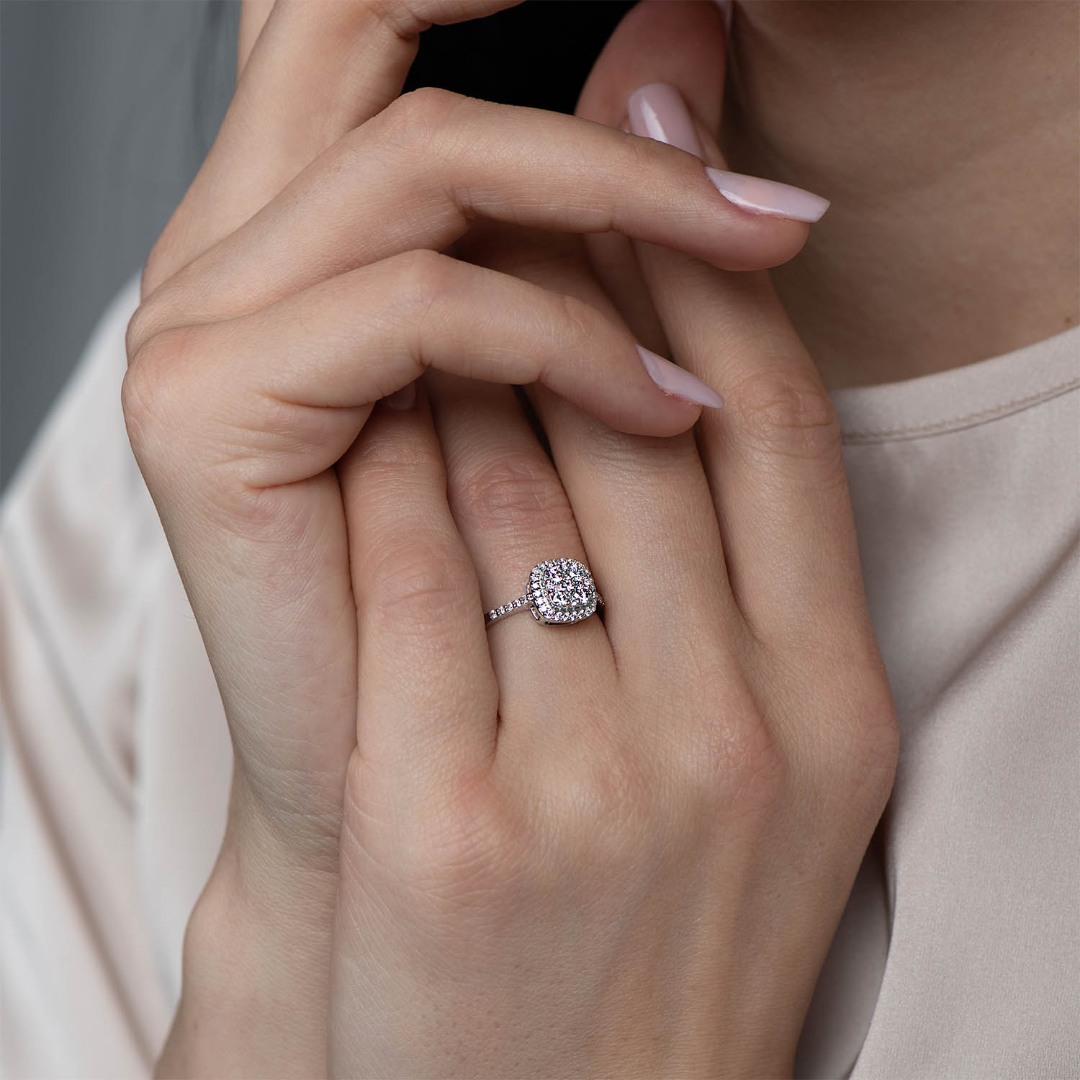 Inel din aur alb de 14K cu Diamante naturale