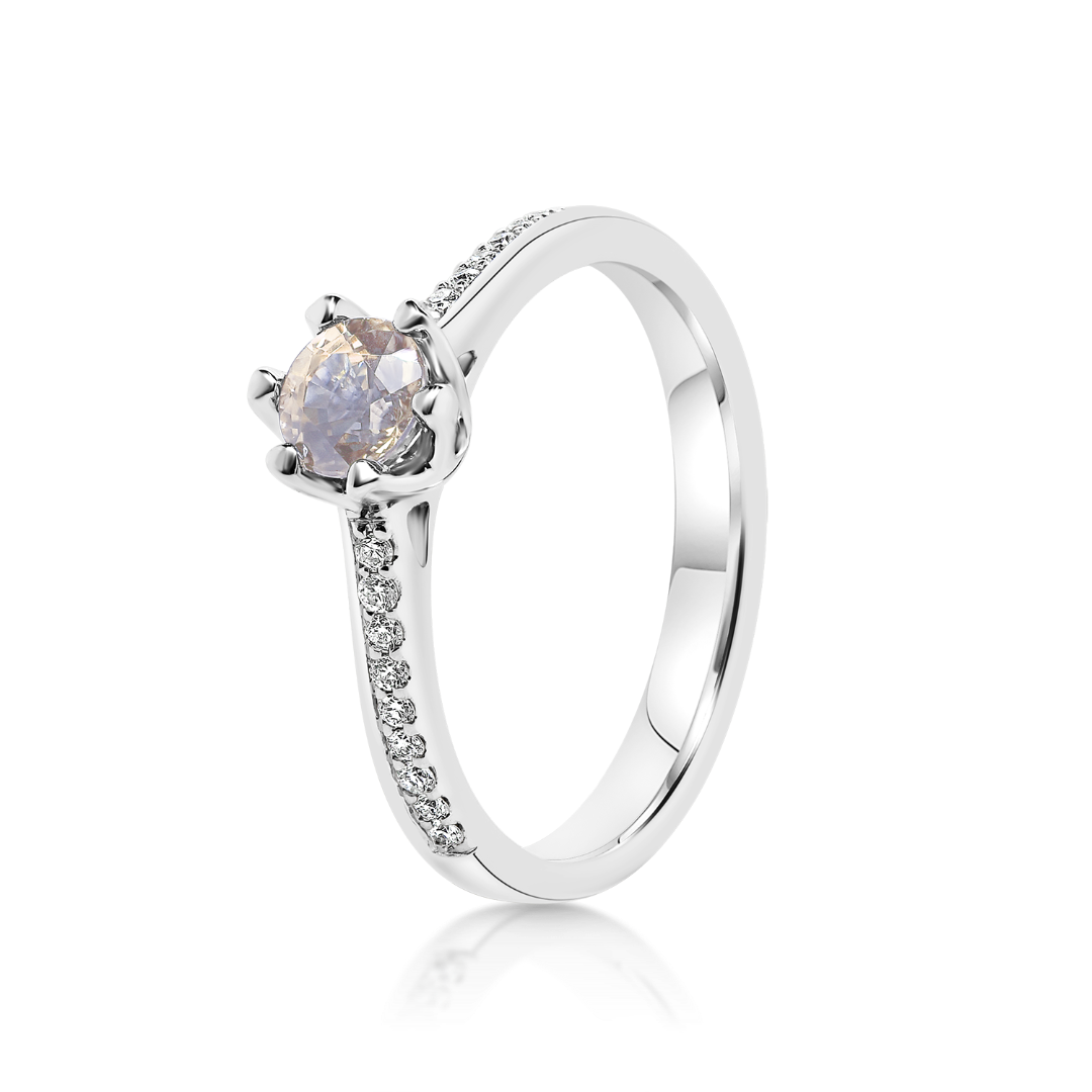 Inel din aur alb de 18K, cu Diamante naturale de 0.09ct și un Quartz de 0.275ct.
