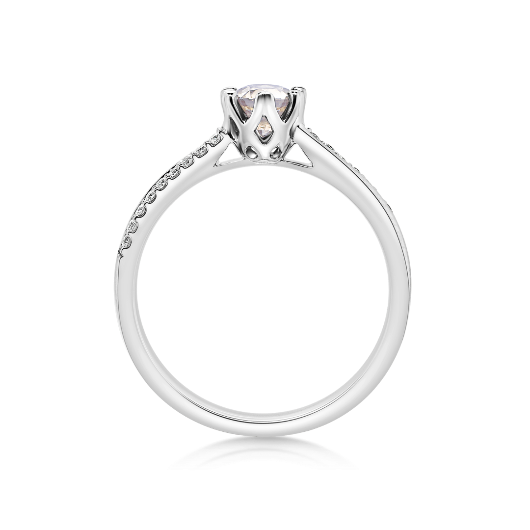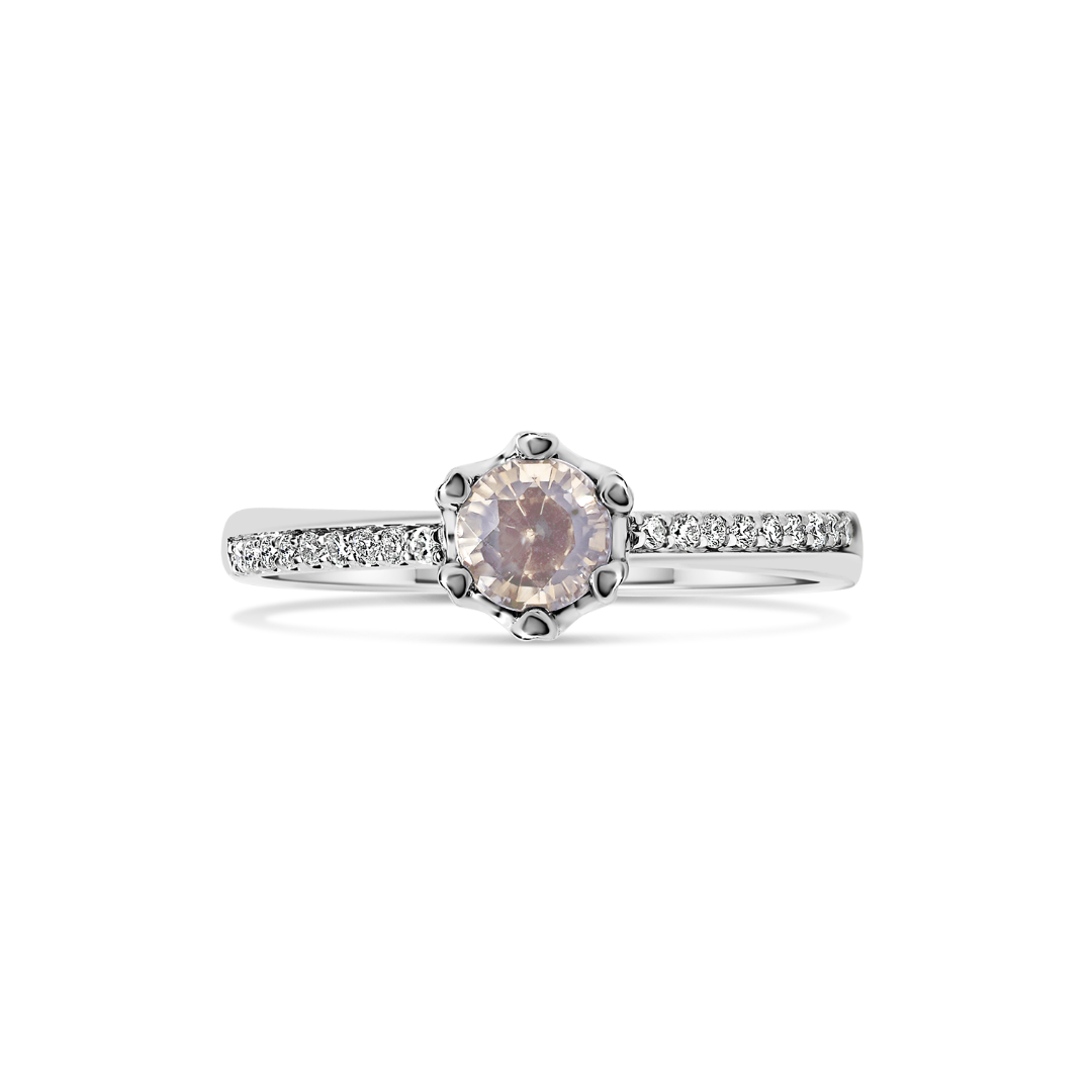 Inel din aur alb de 18K, cu Diamante naturale și Pink Quartz
