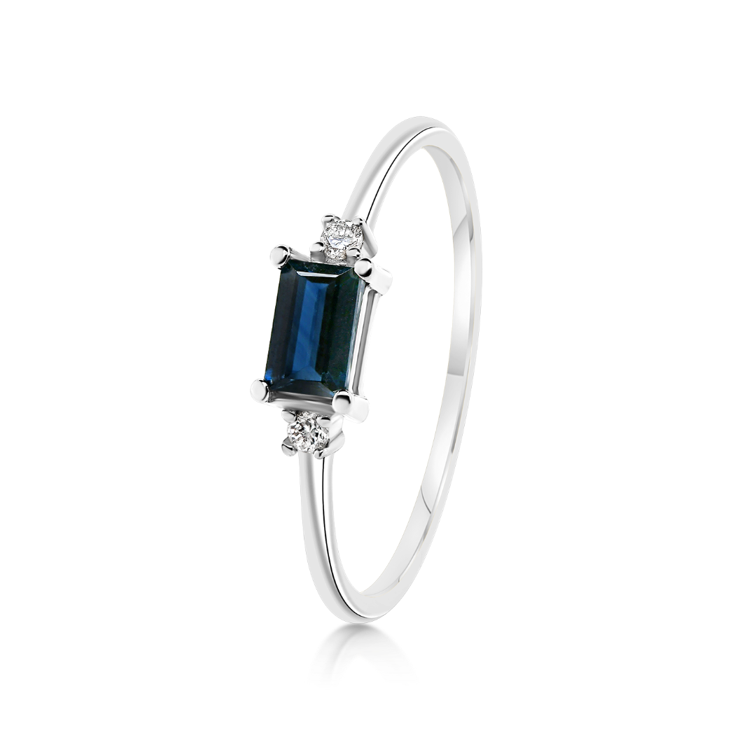 Inel din aur alb de 18K cu Diamante și Safir