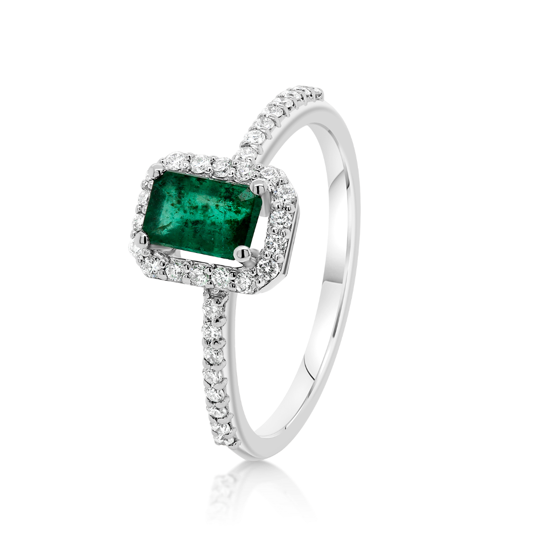 Inel din aur alb de 14K, cu Diamante de 0.21ct. și Smarald de 0.54ct.